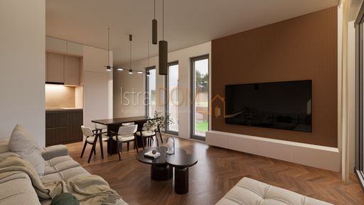Prizemlje obuhvaća ulazni dio, spavaću sobu, kupaonicu, hodnik, kuhinju s blagovaonicom i dnevni boravak s impresivnom 5-metarskom staklenom stijene koja omogućava obilje prirodnog svjetla i vizure prema vanjskom prostoru. Terasa je pristupačna iz dnevnog boravka i idealna je za opuštanje i druženje.