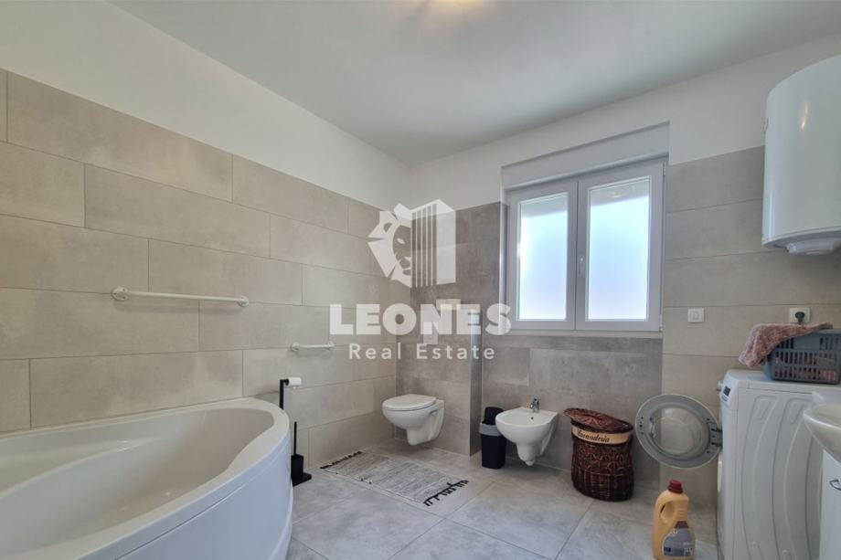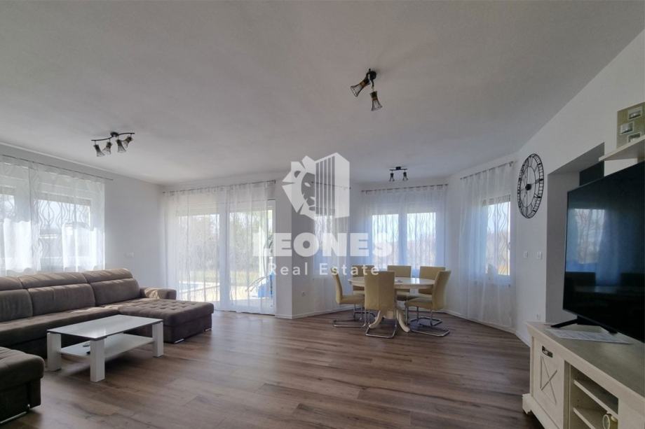 Na okućnici se nalazi bazen od 24 m2 te roštilj. Navodnjavanje je automatsko. Kuća raspolaže sa tri parkirna mjesta te se prodaje potpuno namještena.