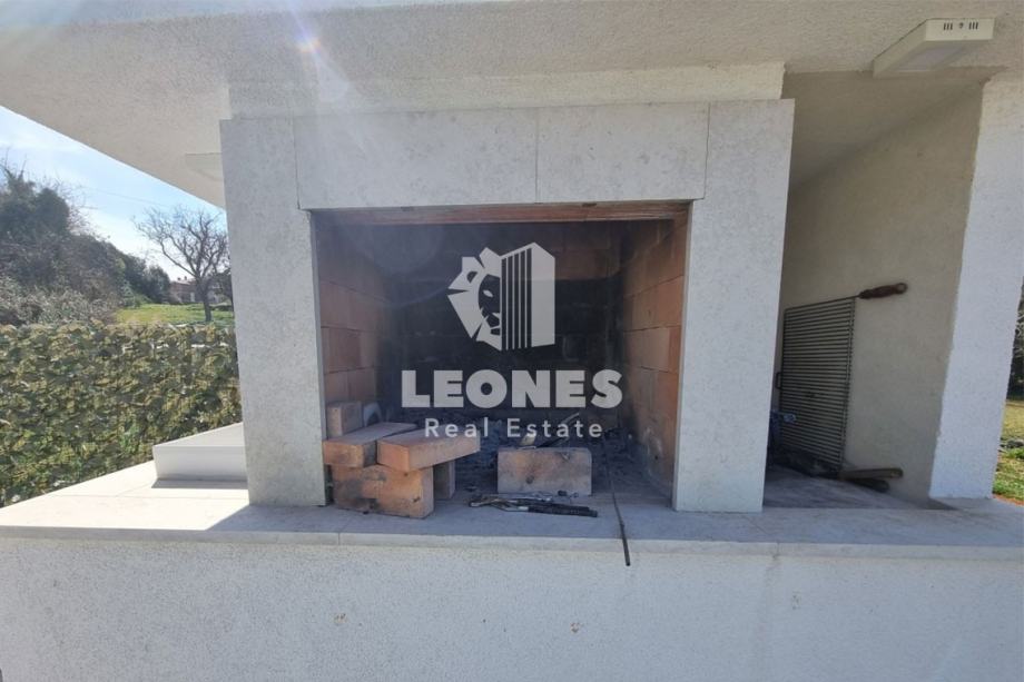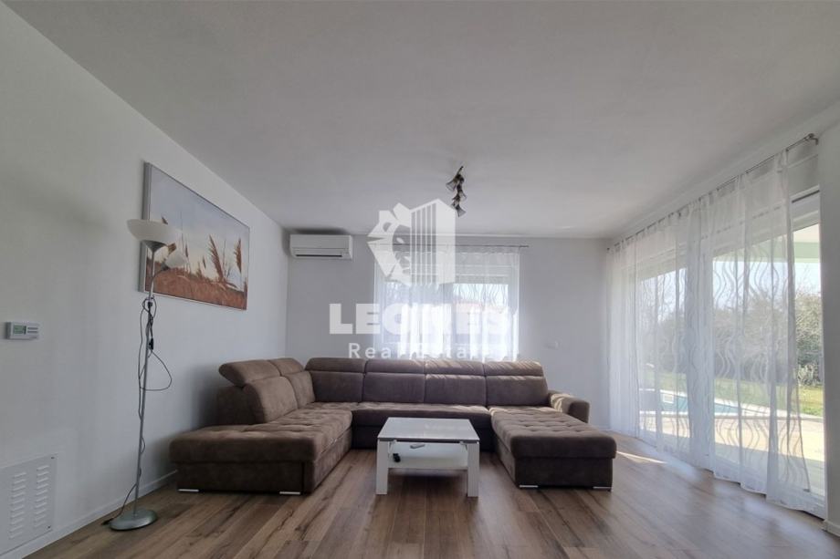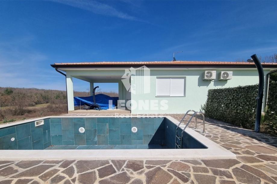 Kuća s bazenom u mirnom naselju u okolici Brtonigle. Površina kuće je 160 m2 dok je površina zemljišta 965 m2. Kuća se sastoji od ulaznog hodnika, dnevnog boravka sa izlazom na terasu, kuhinje s ostavom, 3 spavaće sobe te 2 kupatila.