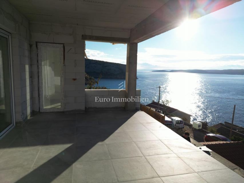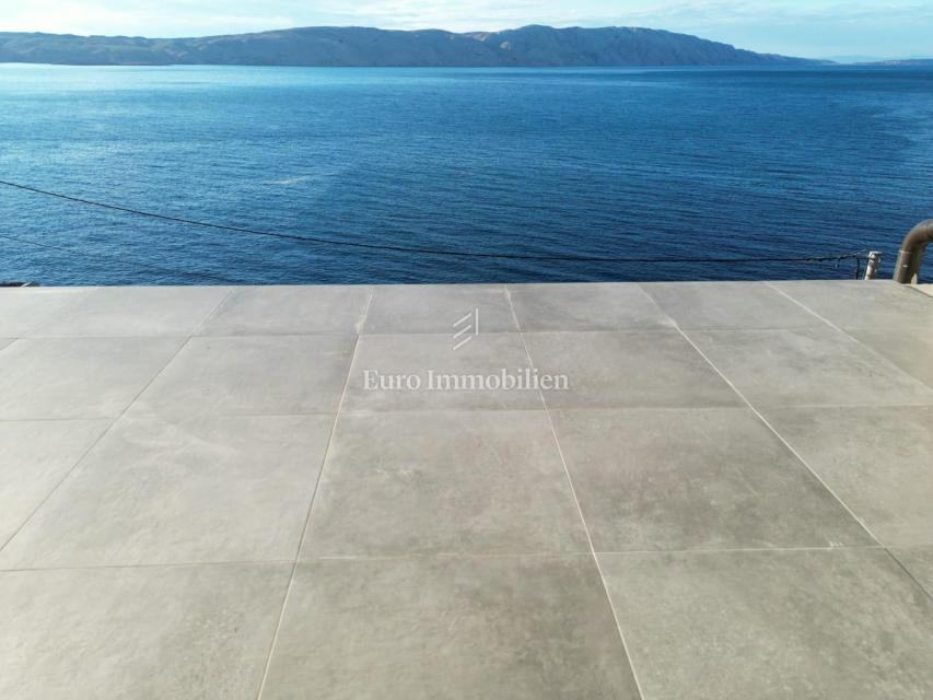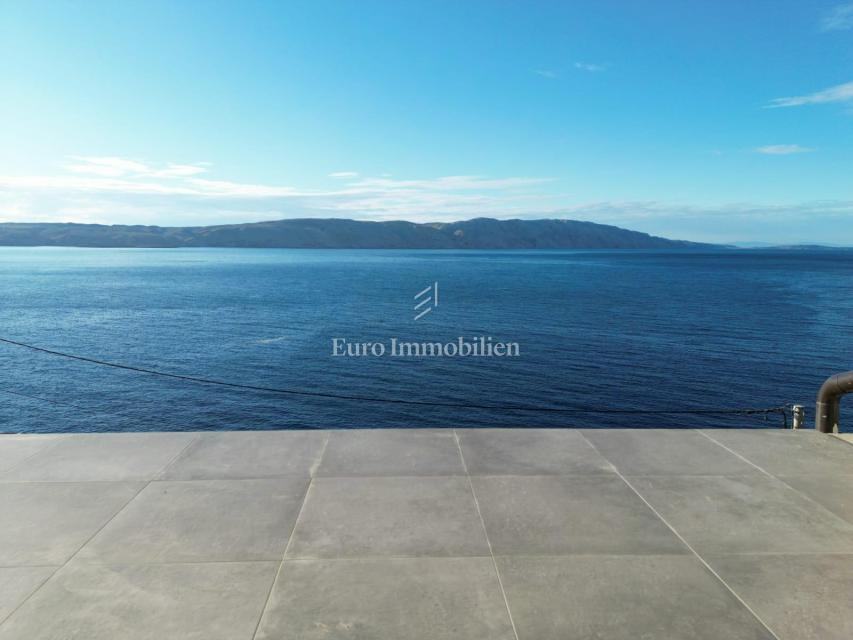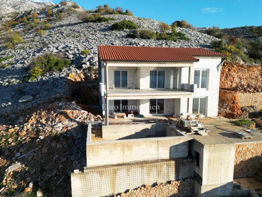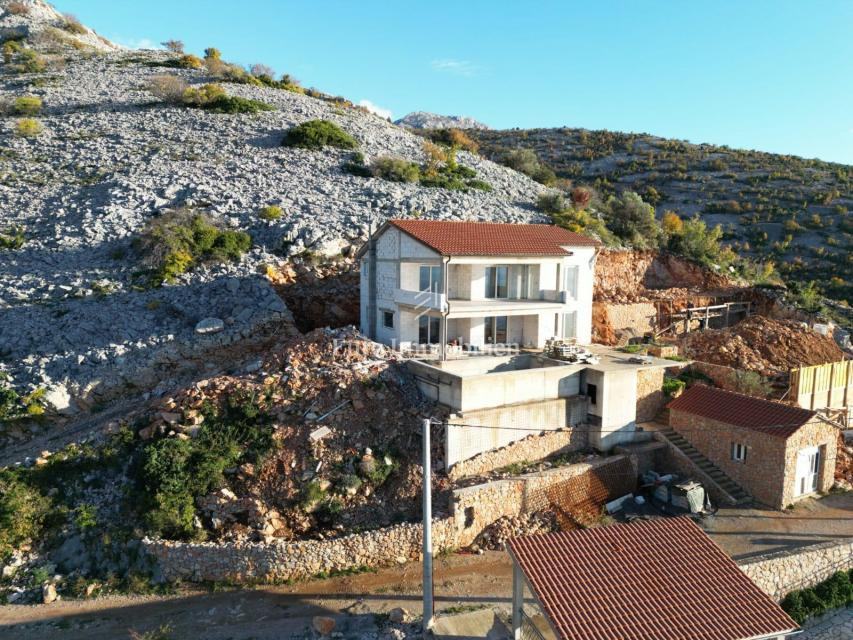 Sama kuća je uzdignuta od ceste uz koju je izgrađena garaža i spremište, te se stepenicama dolazi do kuće. U prizemnom dijelu je spavaća soba s kupaonicom, WC, te otvoreni prostor dnevnog boravka i kuhinje koji se povezuje s vanjskom natkrivenom terasom prema preljevnom bazenu. Na katu su još tri spavaće sobe svaka s vlastitom kupaonicom i velikom terasom. Sve prostorije su klimatizirane, a kuća se priprema i oprema za turistički najam. Iz svake prostorije se pruža prekrasan pogled na more.
