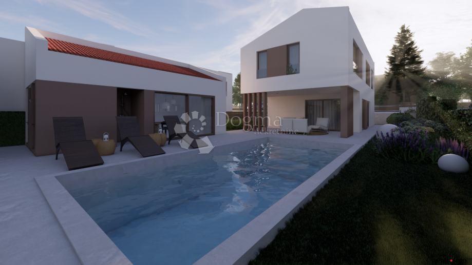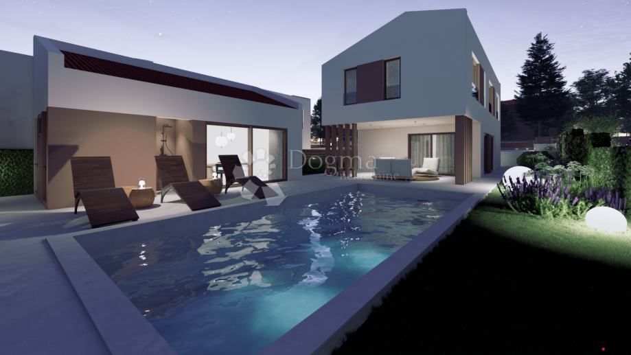 Osim glavne kuće, na parceli se nalazi i pomoćni objekt, dok bazen pruža dodatni luksuz i mjesto za opuštanje.