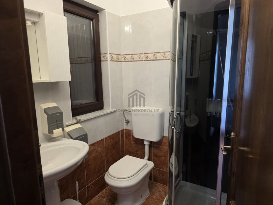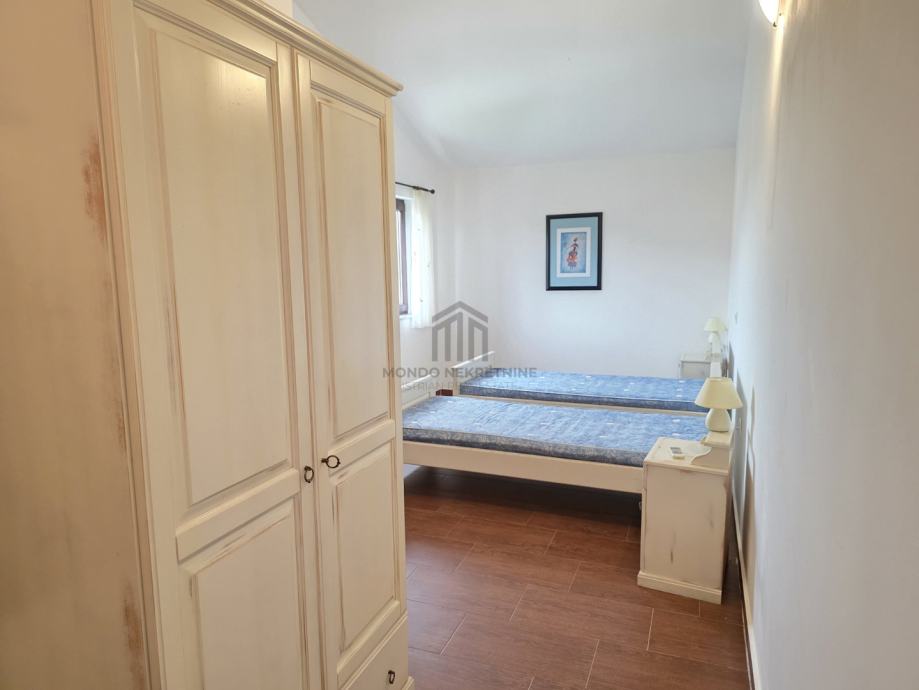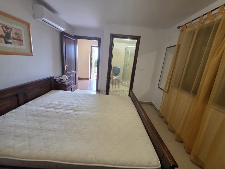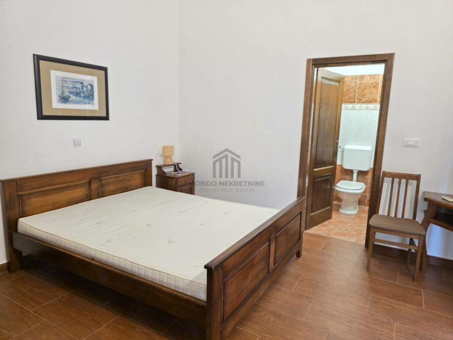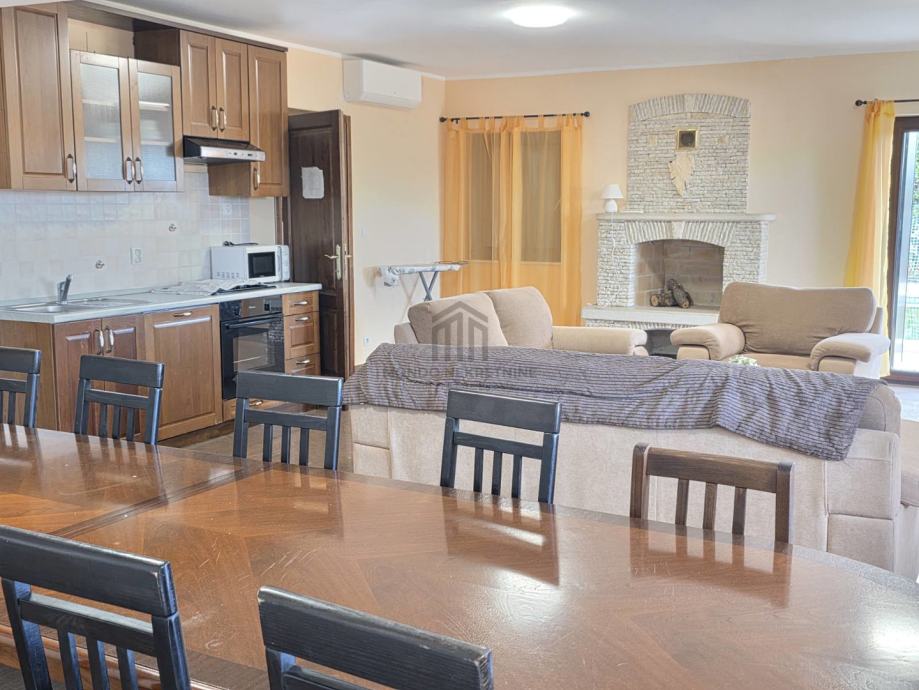 U prizemlju se nalazi prostrani open space prostor koji objedinjuje dnevni boravak, blagovaonicu i kuhinju, iz kojeg se kroz više izlaza pristupa uređenom dvorištu. U istom dijelu nalazi se i WC.Na gornjoj etaži smještene su četiri spavaće sobe, svaka s vlastitom kupaonicom.U dvorištu se nalazi uređena konoba s kaminom.