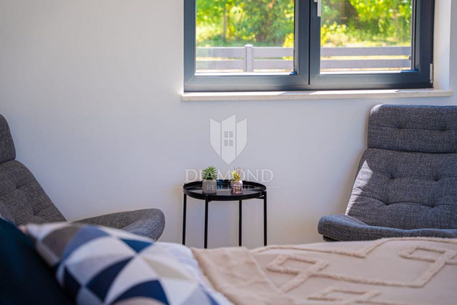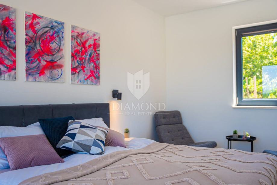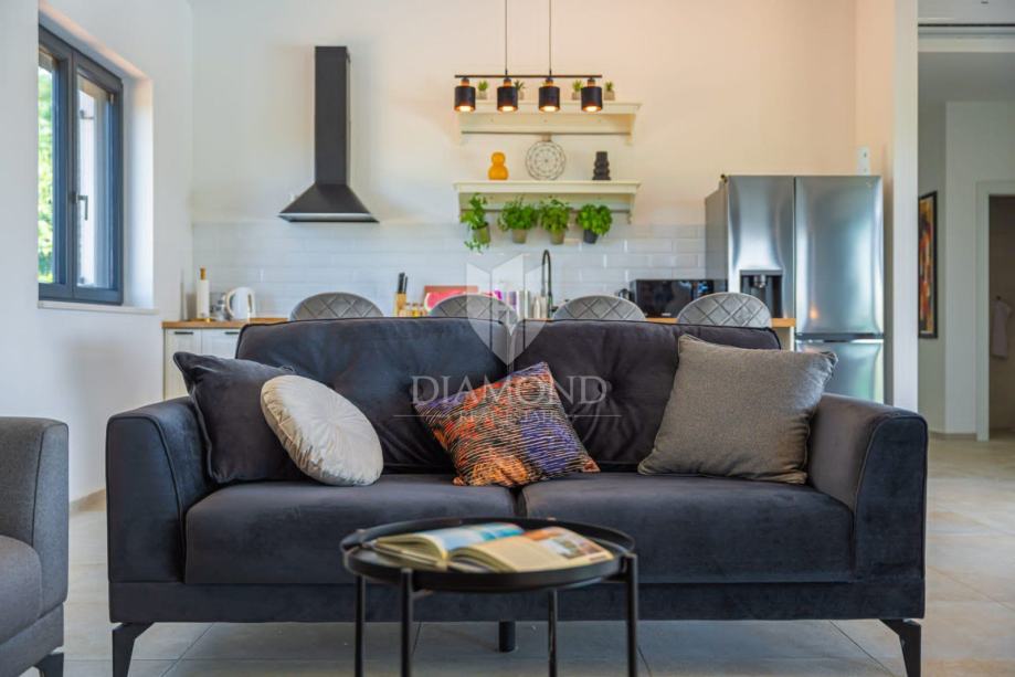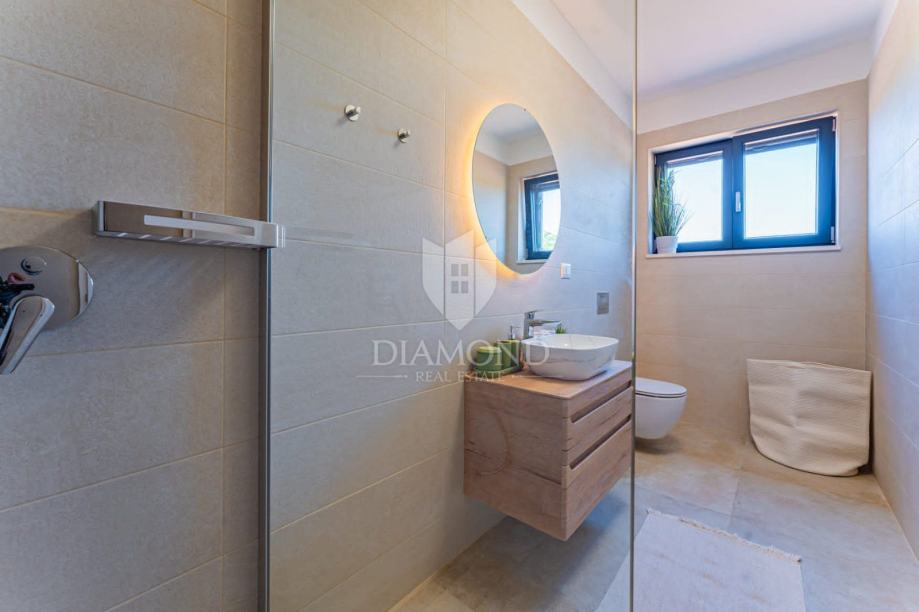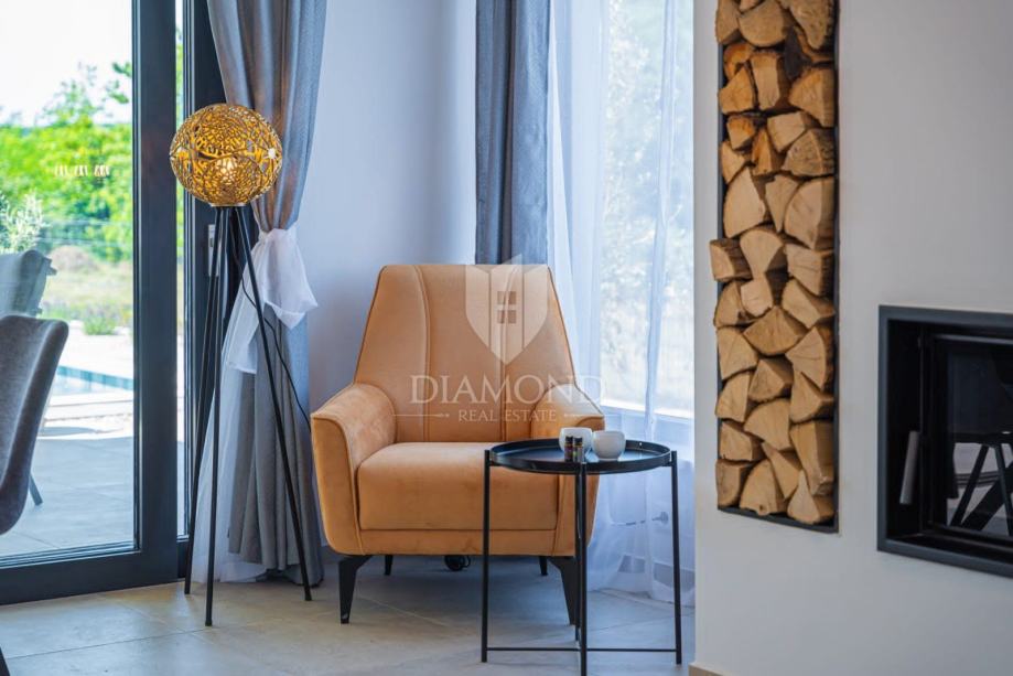 Na prodaju je moderna novogradnja s grijanim bazenom smještena na mirnoj i privatnoj lokaciji, svega 10 minuta vožnje od centra grada. Ova kvalitetna nekretnina prostire se na 150 m² stambene površine, dok ukupna površina okućnice iznosi 850 m².