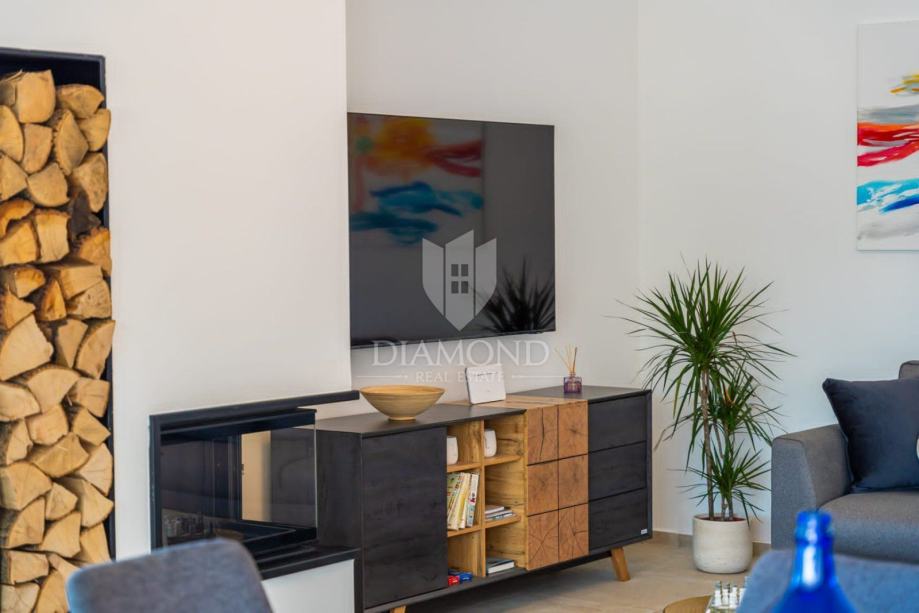 Kuća je opremljena podnim grijanjem u svim prostorijama, klima uređajima te kaminom u dnevnom boravku koji stvara poseban ugođaj tijekom zimskih mjeseci. Grijani bazen omogućuje korištenje i izvan ljetne sezone.