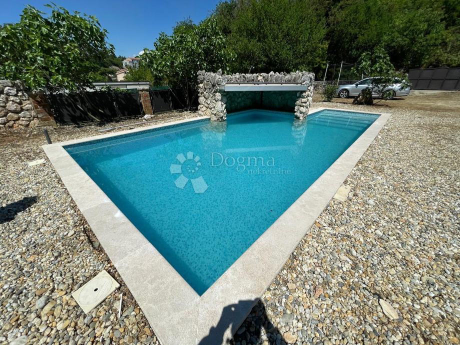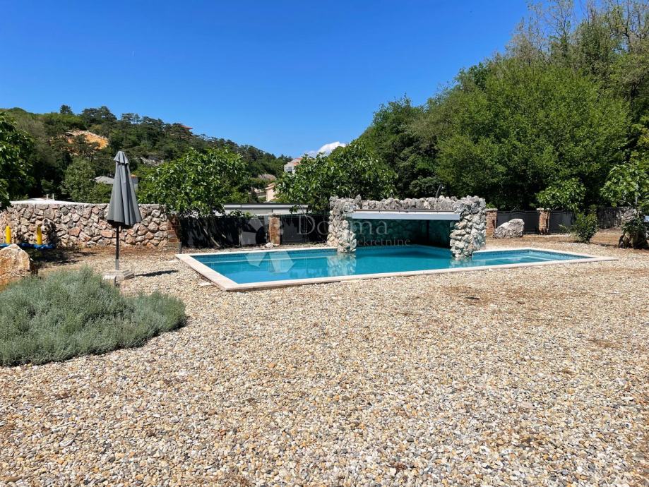 Iz dnevnog dijela izlazi se na veliku terasu s pogledom na bazen okružen zelenilom i vodopadom koji stvara opuštajuću atmosferu.