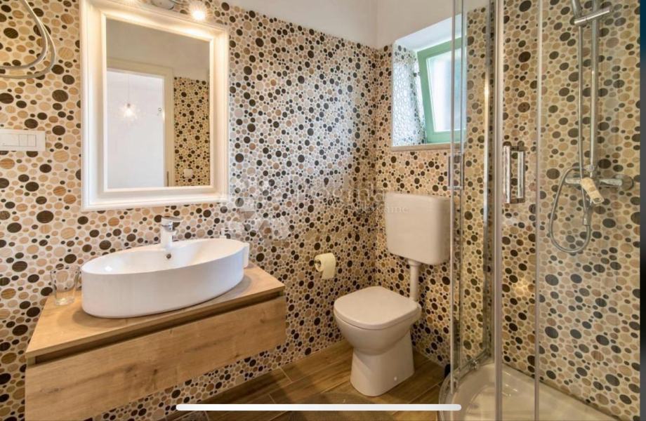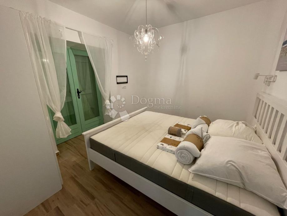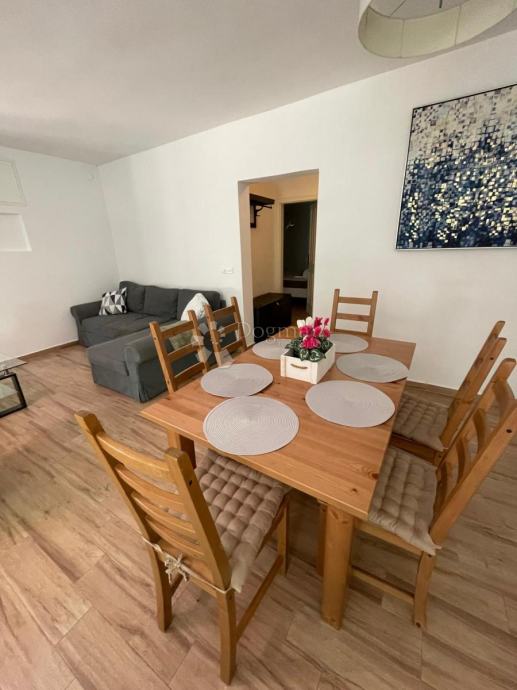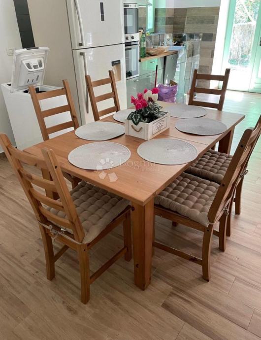 Sve se odvija u prizemlju – kuhinja s blagovaonicom, prostrani dnevni boravak, dvije udobne spavaće sobe i moderno uređena kupaonica.