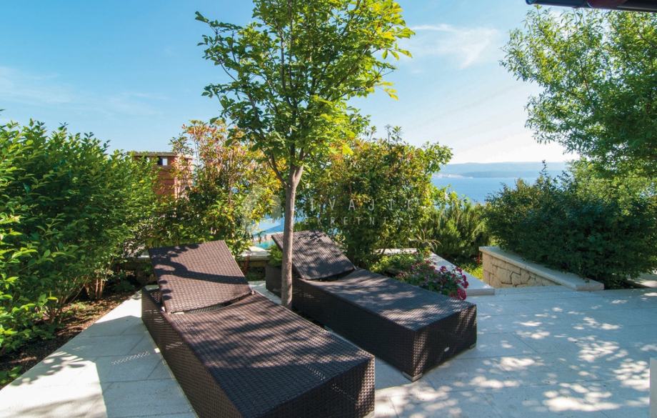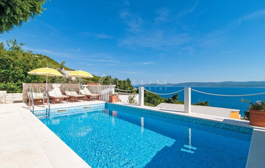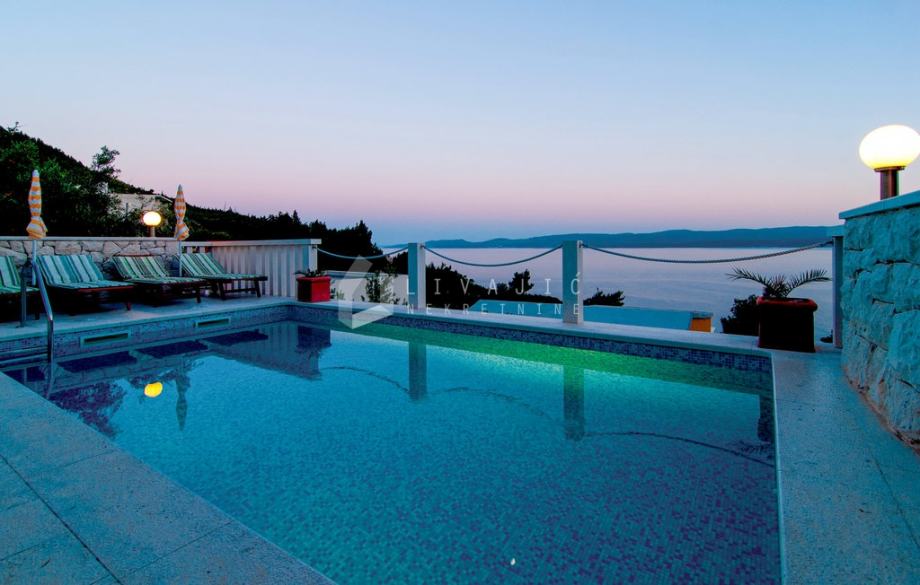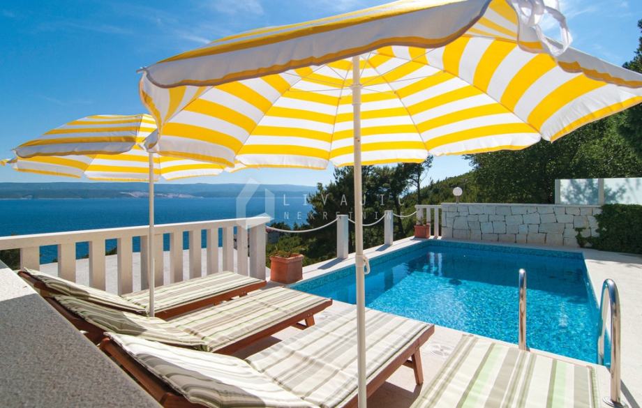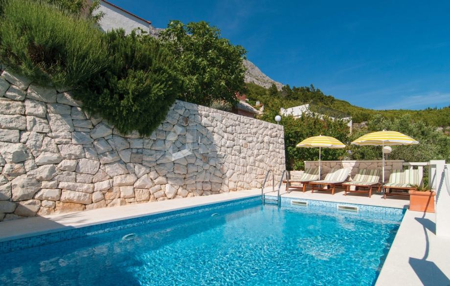 Nekoliko koraka niže smješten je bazen sa sunčalištem, s kojeg se pruža neometan pogled na prirodu i okoliš.