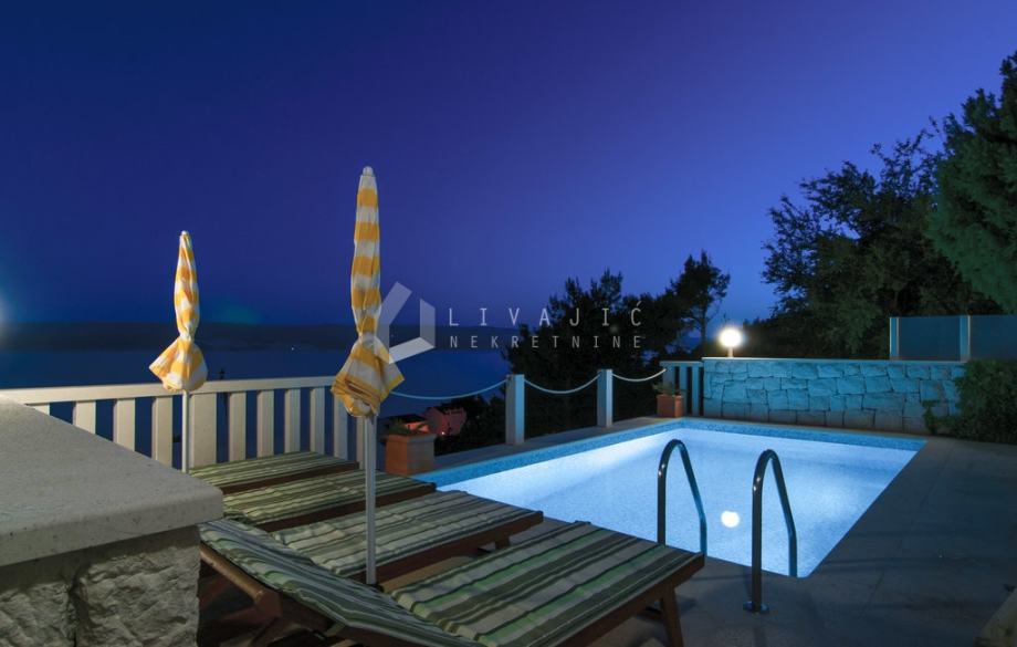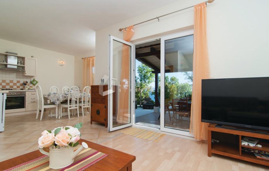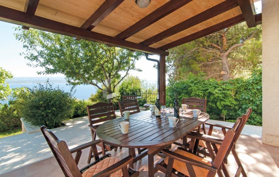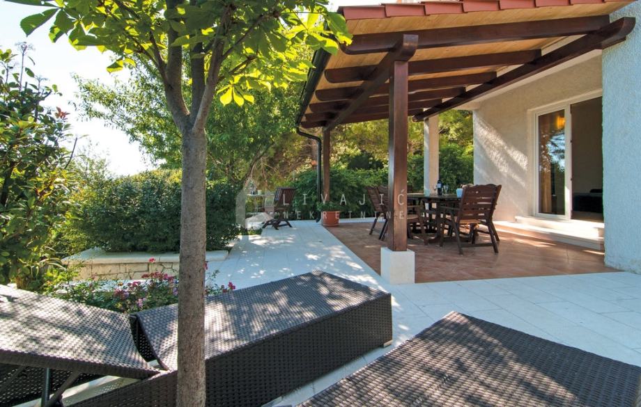 Iz dnevnog prostora izlazi se na prostranu južnu terasu s koje se pruža prekrasan pogled na more i otoke.