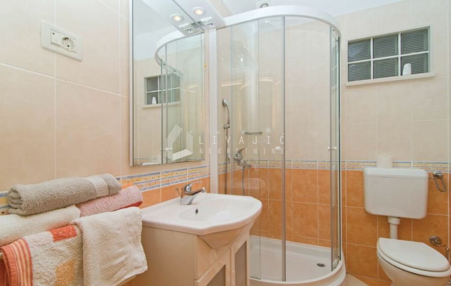 Unutarnje stubište vodi do prizemlja, gdje su smješteni gostinjski studio apartman s posebnim ulazom te komforni dvosobni stan koji uključuje kupaonicu, kuhinju, blagovaonicu i dnevni boravak.