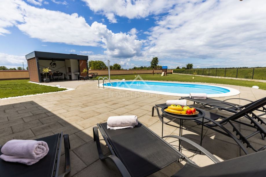 -Grijani bazen 8x4 m s uređenom plažom od betonskih opločnika