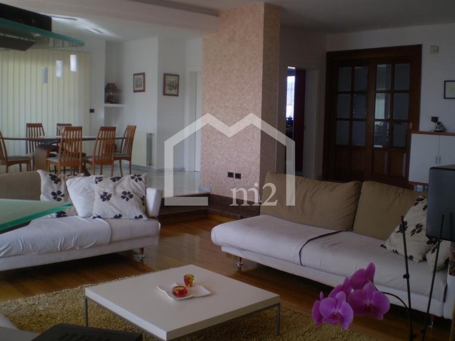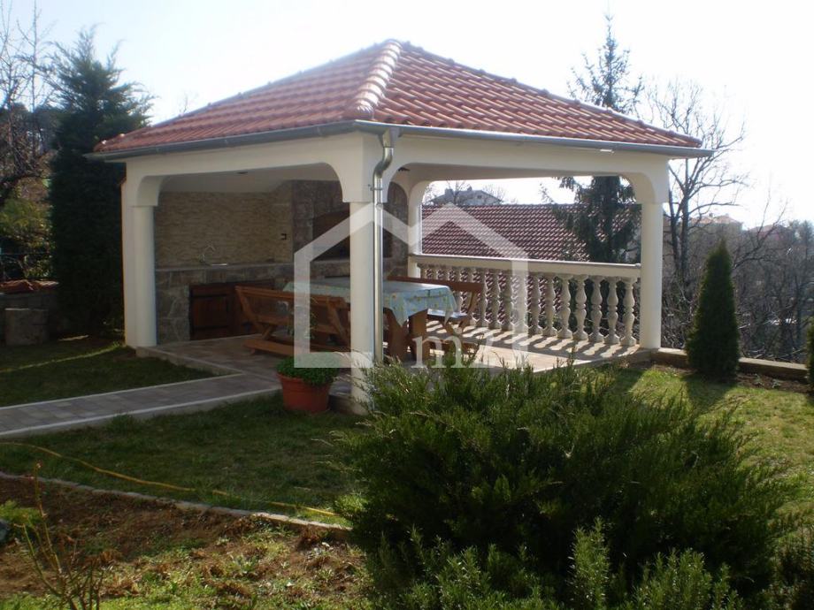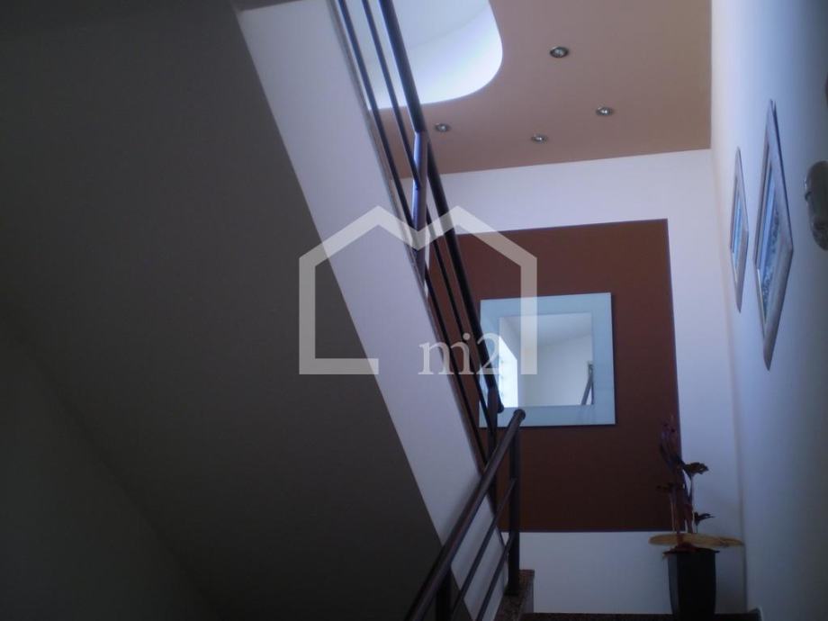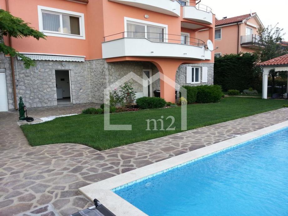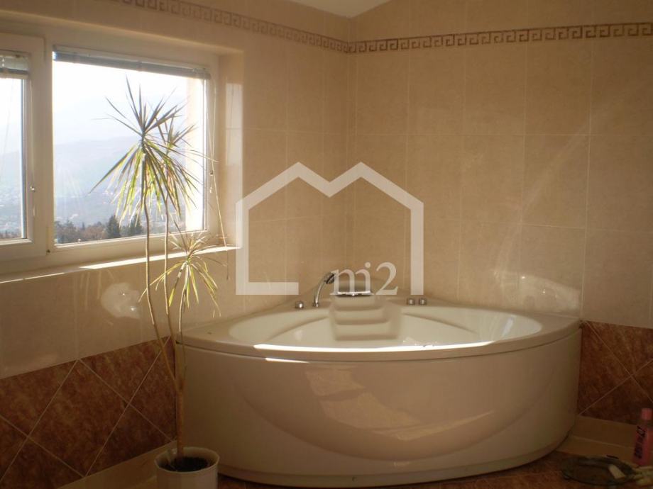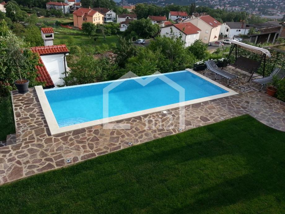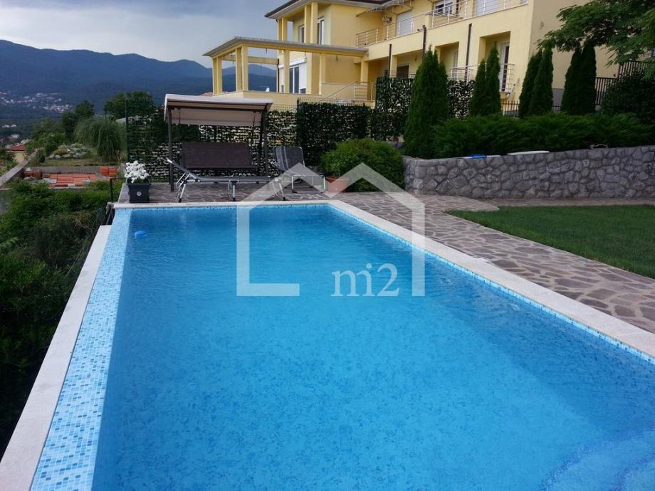 Matulji, predio iznad Opatije sa prekrasnim pogledom na Kvarnerski zaljev, troetažna kuća sa bazenom na parceli površine 1000m2. U prizemlju se nalazi apartman površine 60m2, ordinacija sa sanitarnim čvorom površine 60m2, kotlovnica i pomoćne prostorije, na prvom katu se nalazi dnevni boravak, kuhinja, blagovaonica, spavaća soba, kupaonica i terase, a na drugom katu su četiri spavaće sobe, dvije kupaonice i terase. Kuća je kompletno namještena i opremljena. Grijanje na lož ulje, struju i solarno, podno grijanje. Ispred kuće je travnjak (150m2) sa bazenom (8 x 3.5m) i sunčalištem, te kućica s roštiljem i terasom.Kupac plaća proviziju.Cijena: 980.000€Info: +385 91 111 65 22Mail: info@m2nekretnine.hr