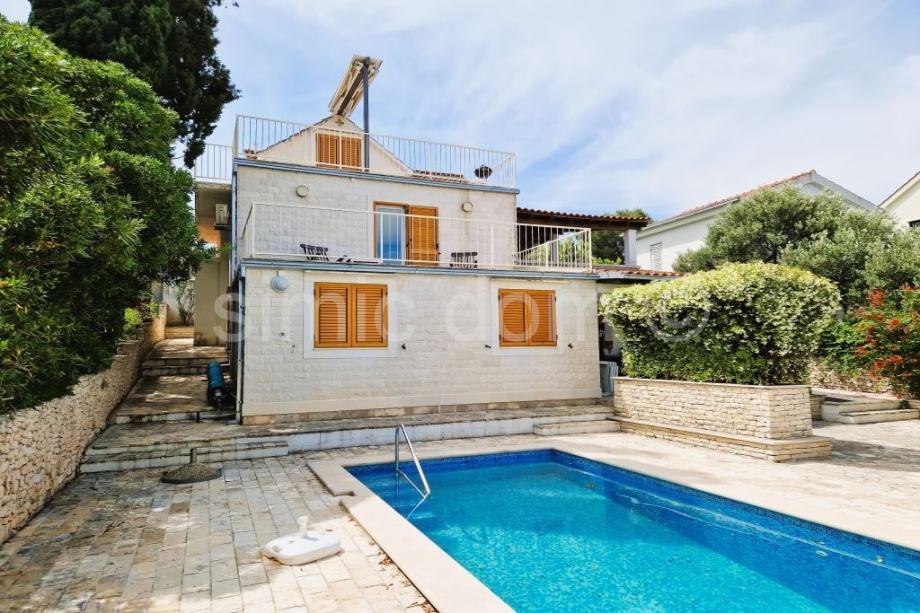 Posredujemo u prodaji prostrane obiteljske kuće na atraktivnoj lokaciji na otoku Braču. Riječ je o kući smještenoj na mirnoj lokaciji i parceli veličine 410 m2. Prostire se na tri etaže (prizemlje, prvi kat i potkrovlje) te je ukupne neto površine 270,54 m². Sastoji se od tri potpuno funkcionalne stambene jedinice – svaka etaža je organizirana kao samostalni trosobni stan. Sveukupno, kuća broji devet spavaćih soba i tri kupaonice. Stan u prizemlju (78,54 m2) te stan u potkrovlju (81,49 m2) imaju po jednu terasu, dok stan na prvom katu (110,51 m2) ima dvije terase. Kuću okružuje uređena i kultivirana okućnica, a na terasi prizemlja nalazi se bazen te prostor za sunčanje i druženje. Kuća je starije gradnje, ali uredna i useljiva, idealna za veću obitelj ili kao investicija za turistički najam. Svaka etaža ima vlastiti ulaz, što dodatno povećava potencijal iznajmljivanja. Odlična pozicija omogućuje brz pristup moru i svim sadržajima, dok terase i okućnica s bazenom nude idealan prostor za opuštanje i uživanje u mediteranskom načinu života.