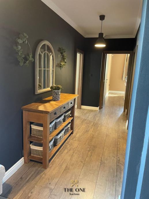 Sastoji se od prostranog dnevnog boravka, moderno opremljene kuhinje s blagovaonicom, tri udobne spavaće sobe, dvije kupaonice i toaleta.