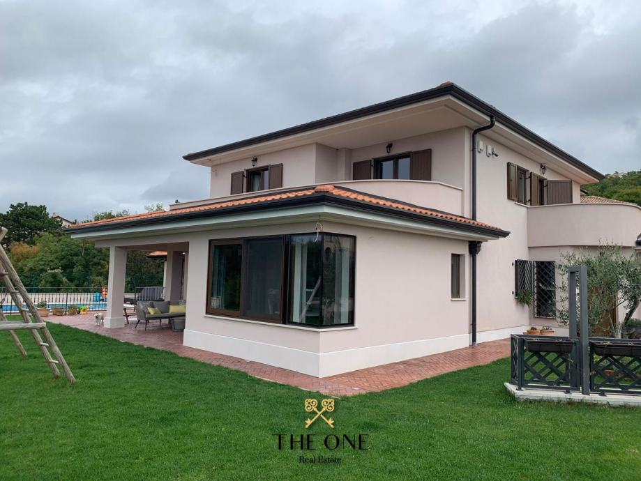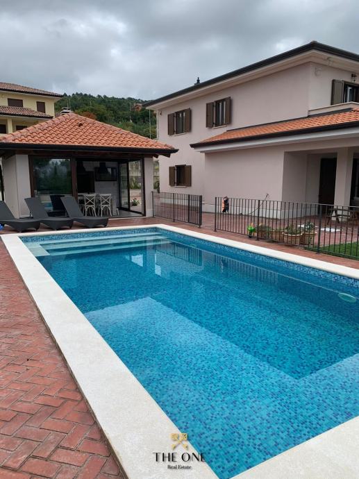 Prekrasna kuća prostire se na 250 m2, raspoređena je na dvije etaže, na impresivnom zemljištu od 1000m2.