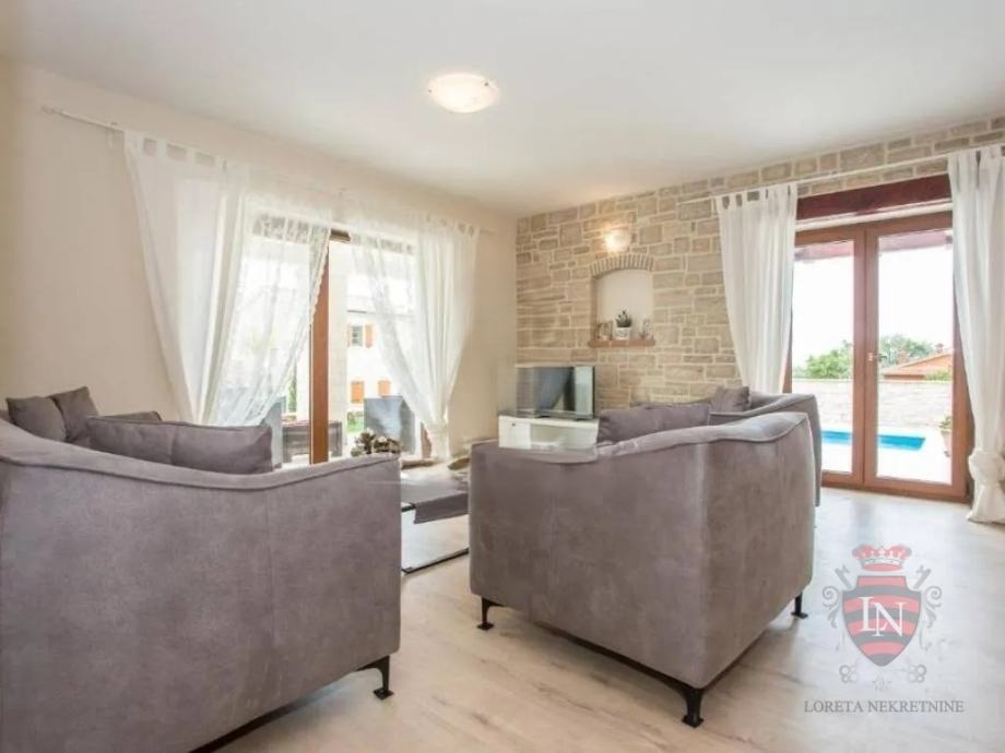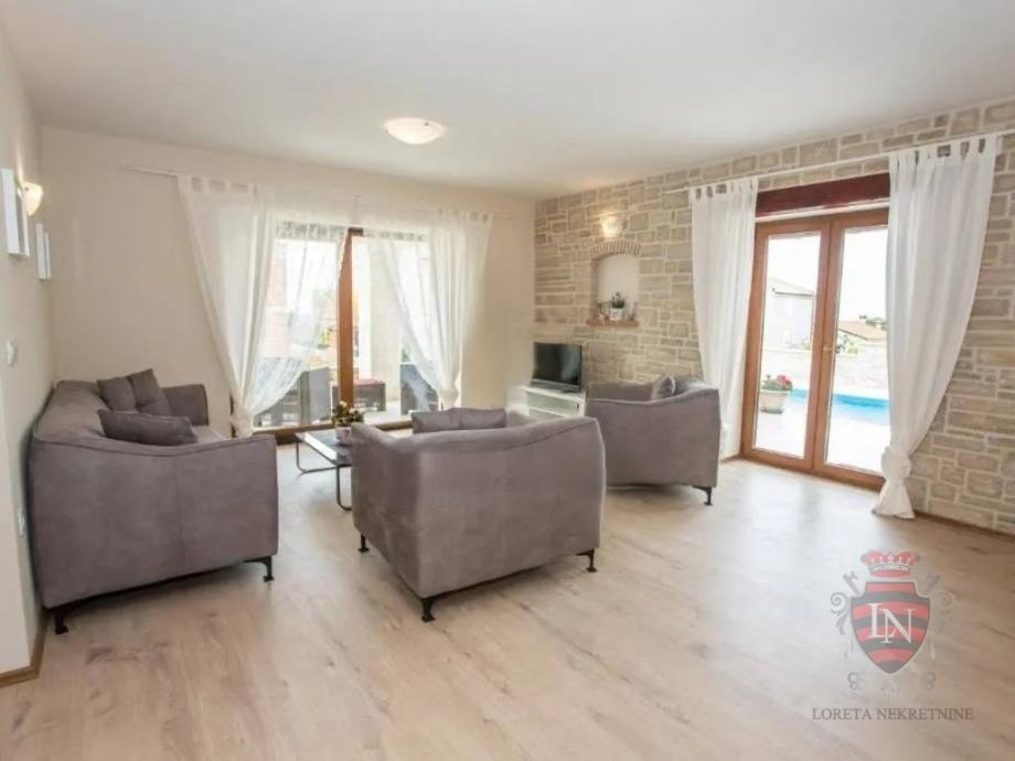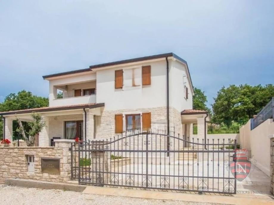 Vila s pogledom na bazen i more prodaje se na prekrasnom mjestu u Istriji, 8 kilometara od mora. Nalazi se na periferiji svježe izgrađenog kolnika s jednako lijepim rezidencijama. Dom se može pohvaliti veličanstvenim pogledom na ocean.