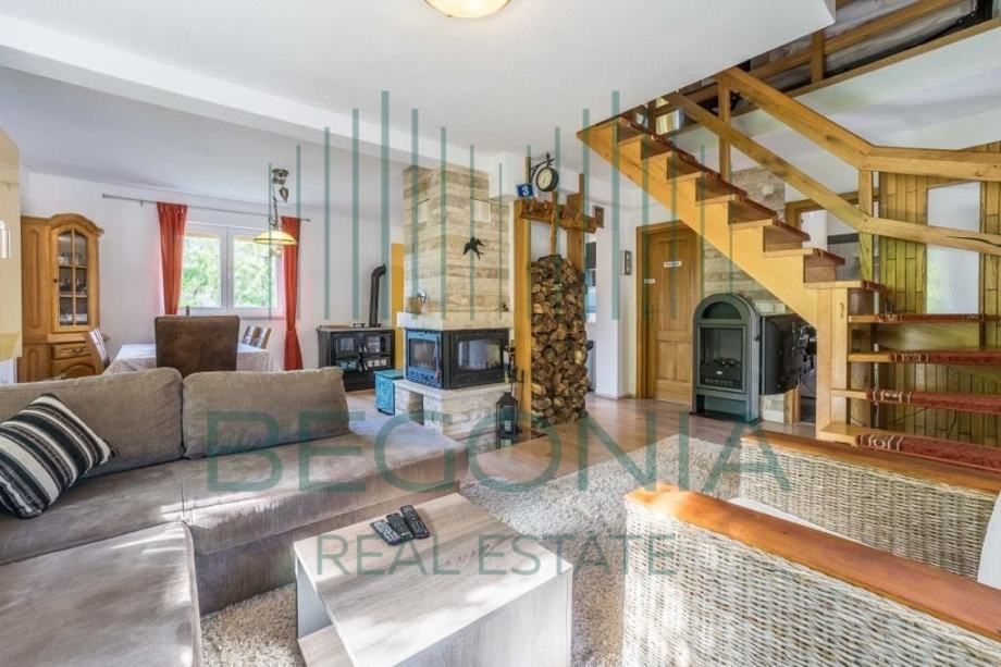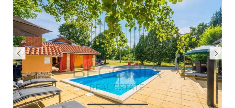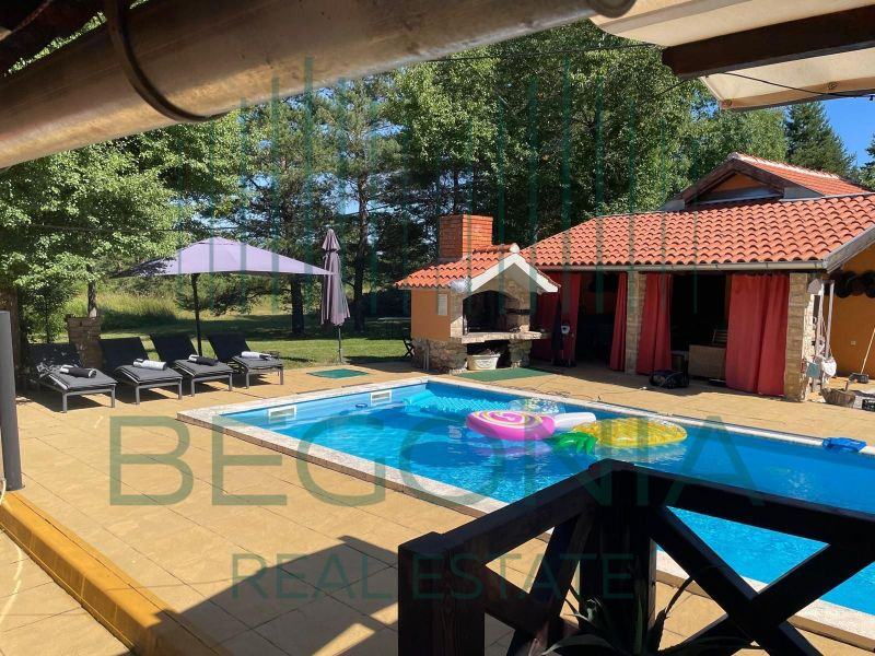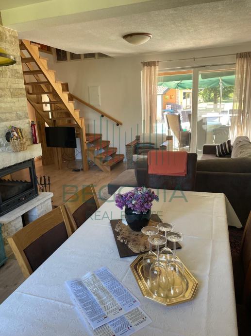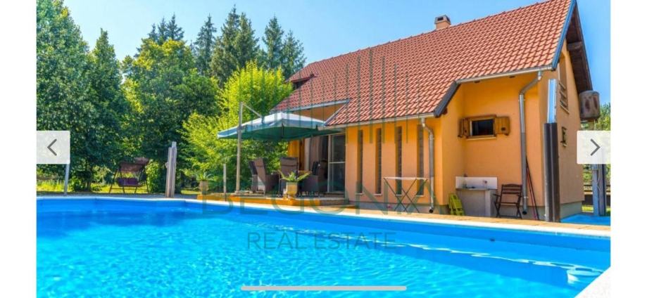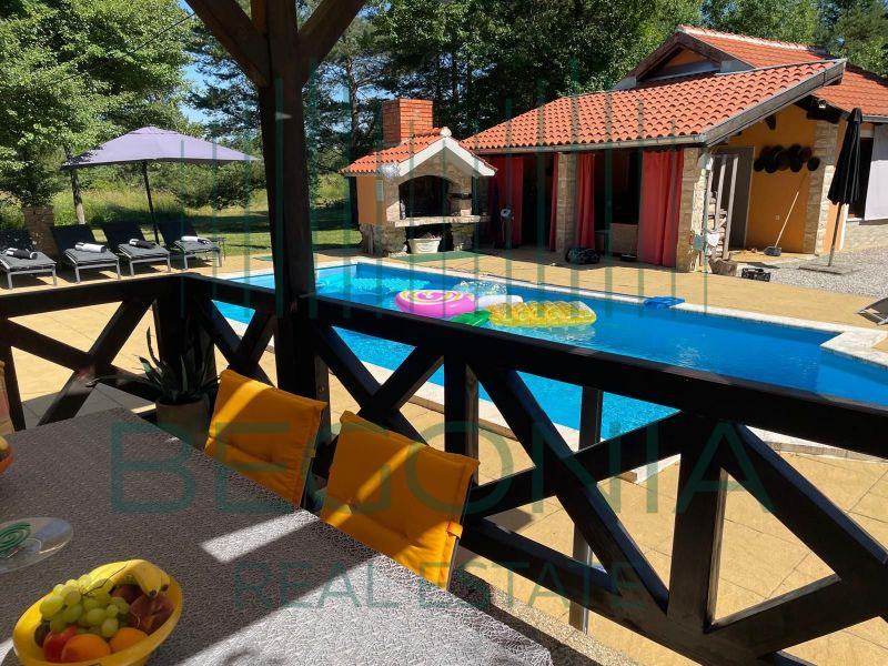 Na prodaju je ladanjska kuća s bazenom površine 110m2 u prekrasnoj prirodi s okućnicom površine 9000m2. U Prizemlju kuće nalazi se kuhinja s blagovaonicom, - prostrani dnevni boravak, - kupatilo s toaletom, - ostava, - nenatkrivena terasa. Gornji kat potkrovlje čine dvije spavaće sobe, - kupatilo s toaletom, - natkrivena drvena terasa na koju izlaze spavaće sobe, otvorenog pogleda na Velebit i imanje. Kuća ima pomoćni objekt koji je preuređen u moderan jednosoban apartman. Grijani bazen 40m2 daje dodatan luksuzni ugođaj i mogućnost istinskog uživanja na ovom idiličnom imanju. Uz kuću natkrivena parkirna mjesta i dječje igralište. Opremljenost objekta: - podno grijanje, kuhinja i kupaonice, - termo izolacija stiropor 10cm, - stolarija kvalitetna hrastovina. Imanje zanimljivo za ljubitelje prirode, konjičkog sporta i jahanja.