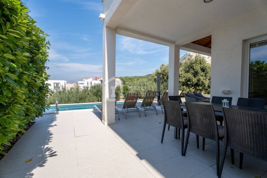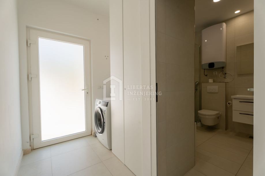 U stražnjem dijelu je velika terasa s prostorom za sjedanje i roštiljem. Prostor je ograđen te je idealan za djecu i druženje, a dodatno se može oplemeniti raznim sadržajem. Nekretnina je idealna kako za život tako i za odmor. U blizini su potrebni sadržaji, dok su restorani i plaža udaljeni oko 1 km od nekretnine.
