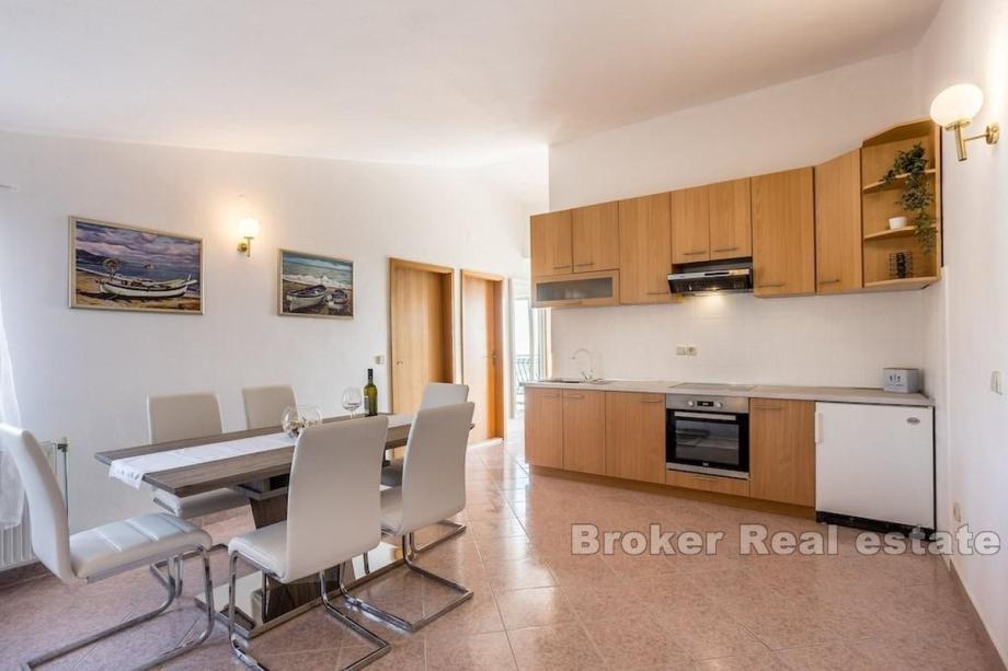 U prizemlju je restoran. Na prvom katu su 4 spavaće sobe sa 2 kupaonice i dnevni boravak. Drugi kat ima 2 apartmana.