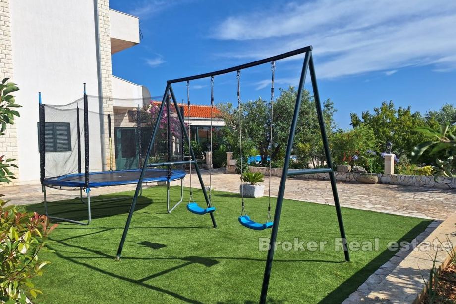 Bazen je veličine 12×6 metara, a na imanju se nalazi 80 stabala maslina i 60 stabala voća.