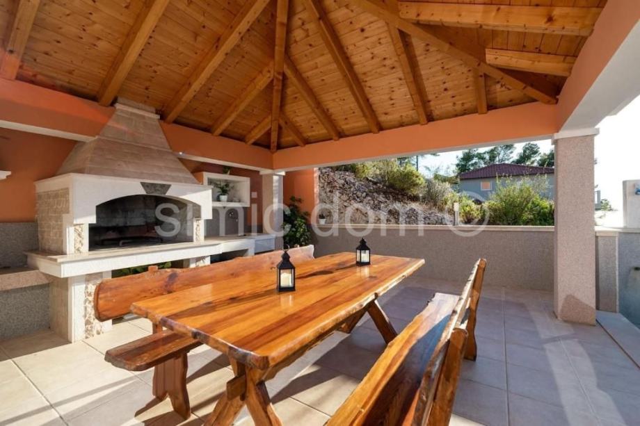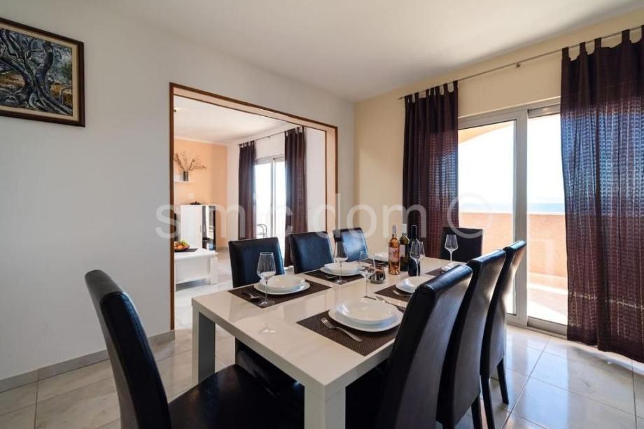 Posredujemo u prodaji vrlo atraktivne nekretnine, smještene tik do mora na vrlo mirnoj lokaciji sjeverne strane otoka Korčule. Riječ je o prostranoj kući s površinom od 400 m2 na parceli od skoro 1000 m2. Prostire se na četiri etaže koje su povezane vanjskim stepenicama, a svaka je etaža odvojen stan. Tri su stana potpuno opremljena i namještena, dok je onaj na zadnjoj etaži (potkrovlje, 95 m2) u roh-bau fazi što dopušta mogućnosti uređenja po vlastitom ukusu. Dodatna je prednost nekretnine impozantna okućnica s natkrivenom terasom, sunčalištem, roštiljem i lijepim bazenom. Kuća ima parkirni prostor za šest automobila kao i garažu. Iz cijele se kuće pruža predivan pogled na more i Hvar. Sama lokacija je vrlo mirna te se svi sadržaji nalaze u obližnjoj uvali koja je od kuće udaljena nekoliko minuta šetnje. S obzirom na prostranost i kvalitetu izvedbe, kao i smještenost tik do mora, riječ je o nekretnini idealnoj za najam. Vlasništvo uredno.