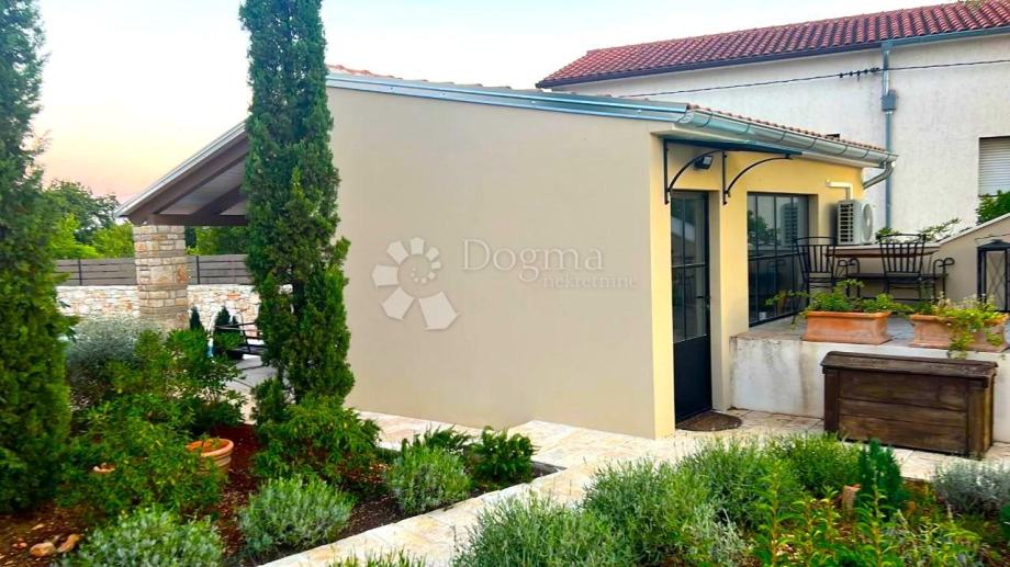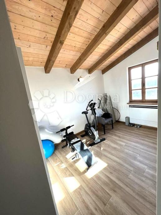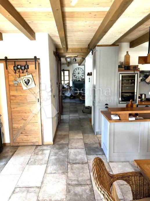 Puteljak Vas dalje vodi prema predivnoj ladanjskoj kući ukupne površine 325 m2, raspoređene na prizemlje i kat. U prizemlju kuće nalazi se prostrana kuhinja s blagovaonicom, dnevni boravak s izlazom na natkrivenu terasu, gostinjski toalet i spremište. Na katu se smještaju četiri spavaće sobe, svaka s vlastitom kupaonicom i izlazom na terasu s prekrasnim pogledom na selo i okolno zelenilo.
