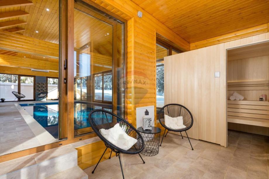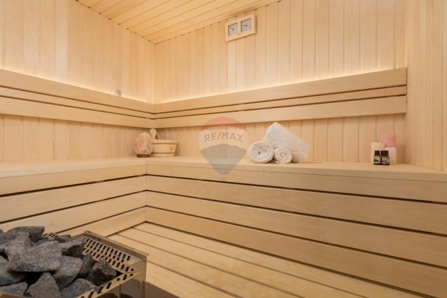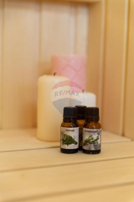 Potrebno je napomenuti kako je kuća opremljena grijanim bazenom, finskom saunom, jacuzzi hidromasažnom kadom, podnim grijanjem u prostoru gdje je bazen, veliki roštilj, kamin u spavaćoj sobi i još dosta detalja koji ostavljaju bez daha.