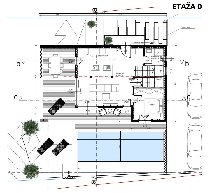 Nekretnina je optimalno smještena na parceli. Pristup bazenu mogu imati svi stanari ili samoodređeni – po želji novog vlasnika.