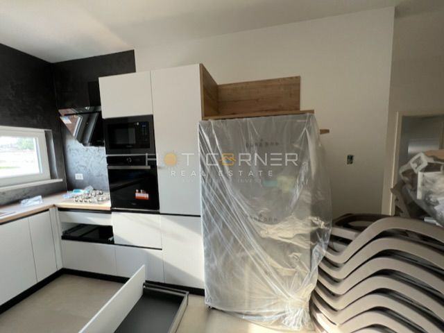 160 m2.Vila se sastoji od 2 etaže, gdje se u prizemlju nalazi dnevni boravak s kuhinjom