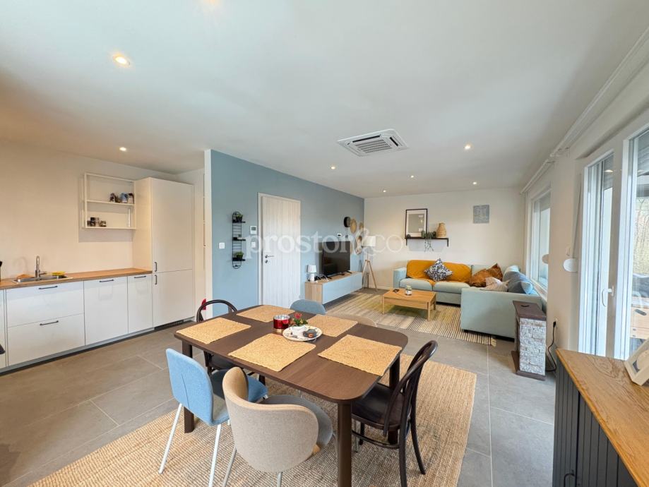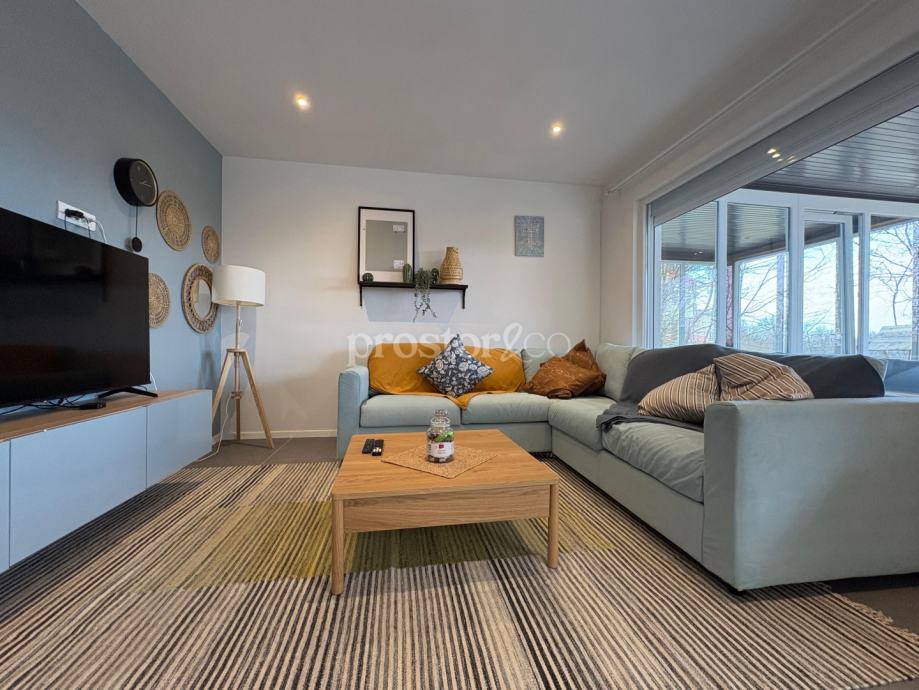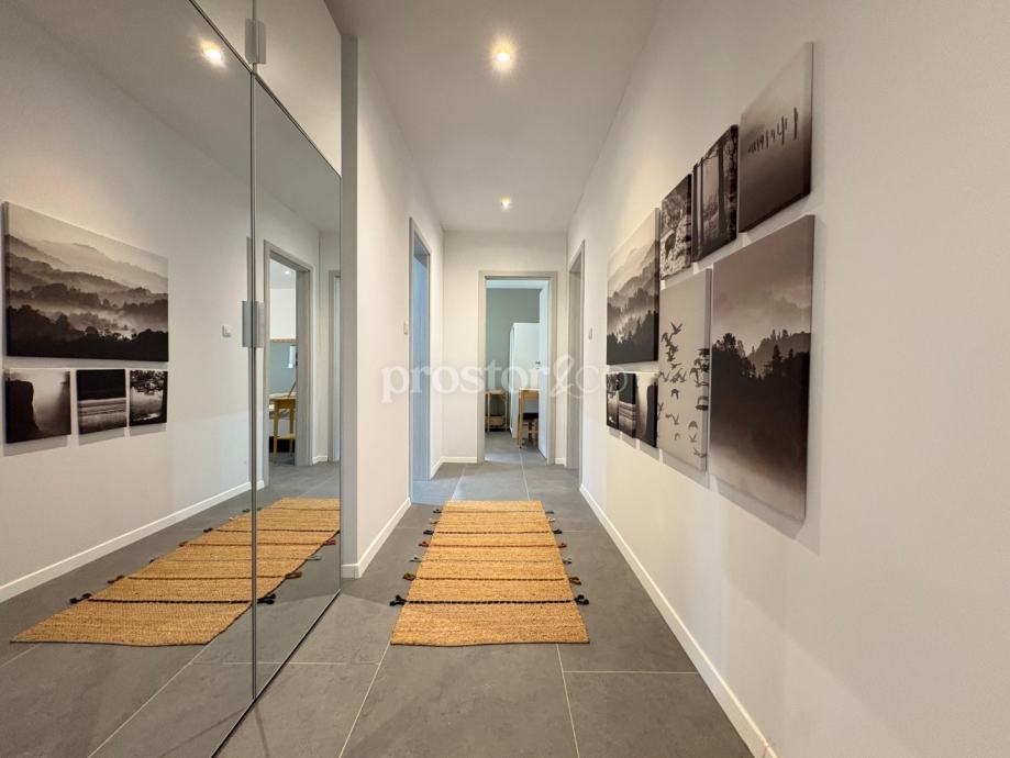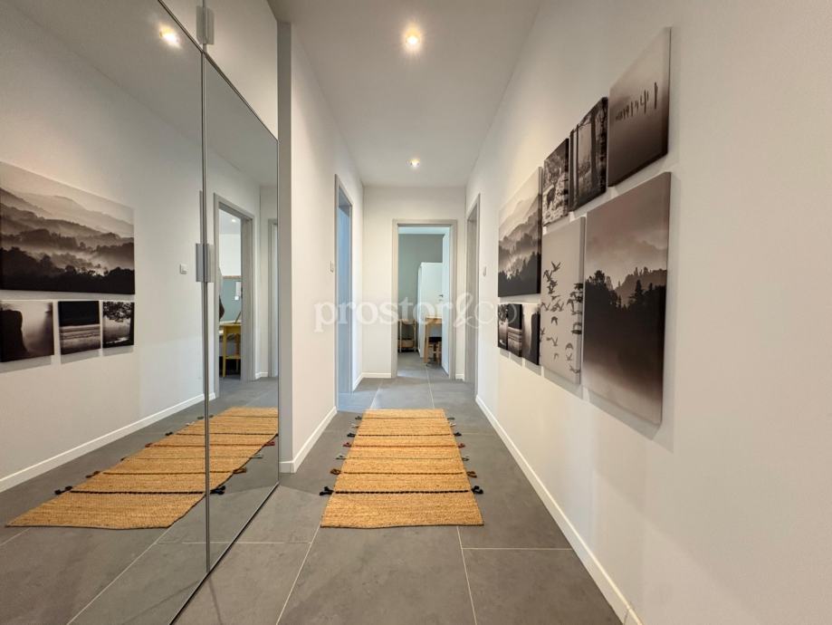 Prostor je svijetao, funkcionalno raspoređen i izuzetno ugodan za svakodnevni život. Sastoji se od prostranog dnevnog boravka s izlazom na natkrivenu terasu, potpuno opremljene kuhinje povezane s blagovaonicom, dvije udobne spavaće sobe, kupaonice i dodatnog toaleta, hodnika s velikim ugradbenim ormarima te zasebne tehničke prostorije odnosno vešeraja. U dnevnom boravku nalazi se i mali električni kamin koji stvara dodatnu toplinu i poseban ugođaj doma.