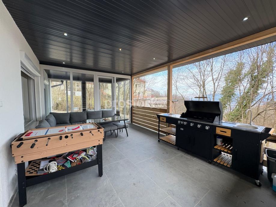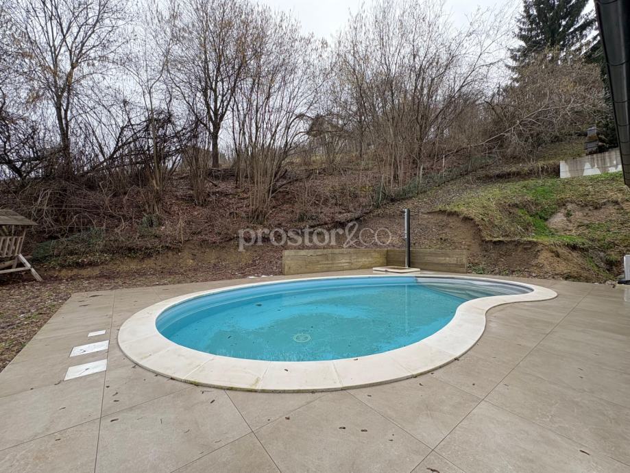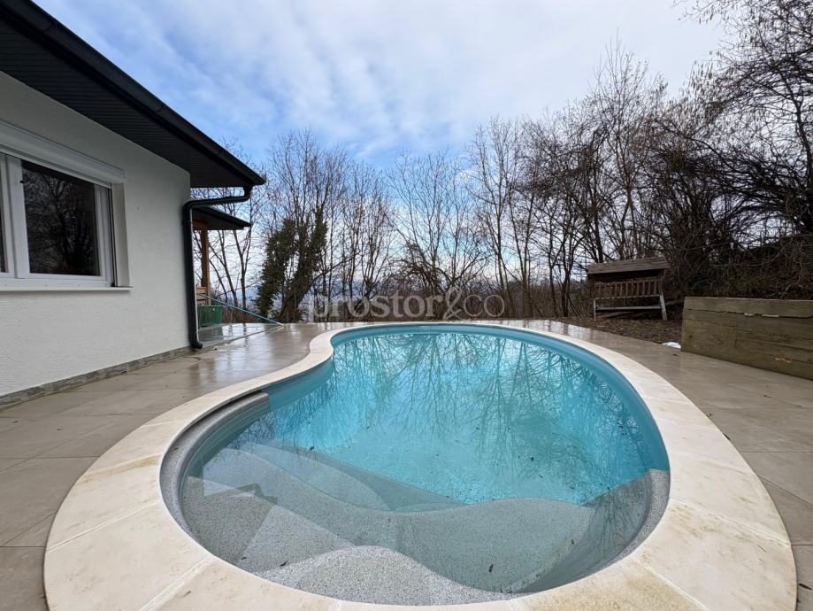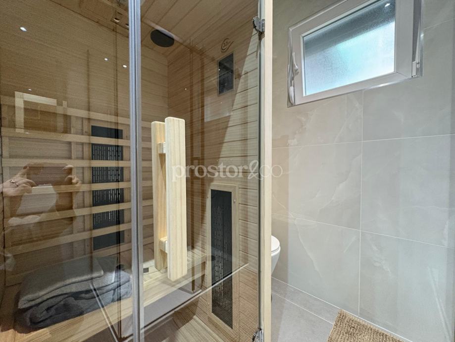 Posebnu vrijednost nekretnini daje uređena okućnica s bazenom i jacuzzijem, sauna, natkrivena terasa s roštiljem te otvorenim pogledom na grad. To je idealno mjesto za opuštanje, druženje i uživanje u prirodi, uz potpuni mir i privatnost.
