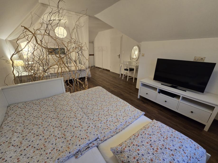 Na katu kuće se nalazi: Spavaća soba sa dva bračna kreveta, spavaća soba sa jednim bračnim krevetom, spavaća soba sa jednim krevetom, kupaonica.