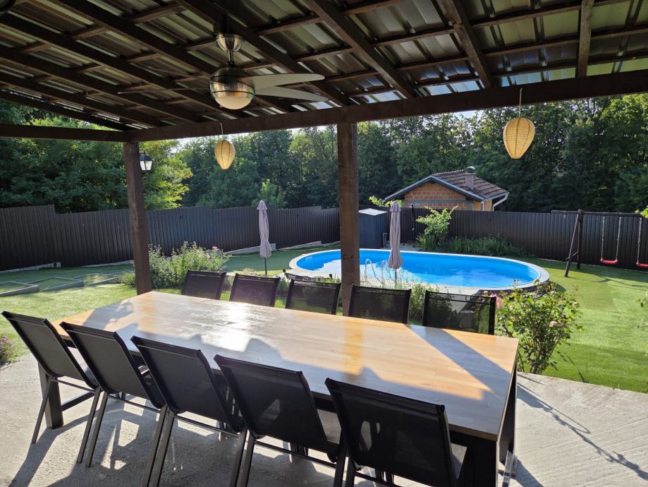 Prodajemo kuću s bazenom u mjestu Hrebinec, općina Brckovljani, Zagrebačka županija. Zemljište je ukupne površine 715 m2, od toga je kuća tlocrtno 105 m2, dok je kuća ukupne površine 182 m2. Pored kuće se nalazi parking na koji stane 4 vozila. Parcela je u potpunosti ograđena. Kuća se trenutno i zadnje 4 godine iznajmljuje kao kuća za odmor te ima uhodani posao u iznajmljivanju.