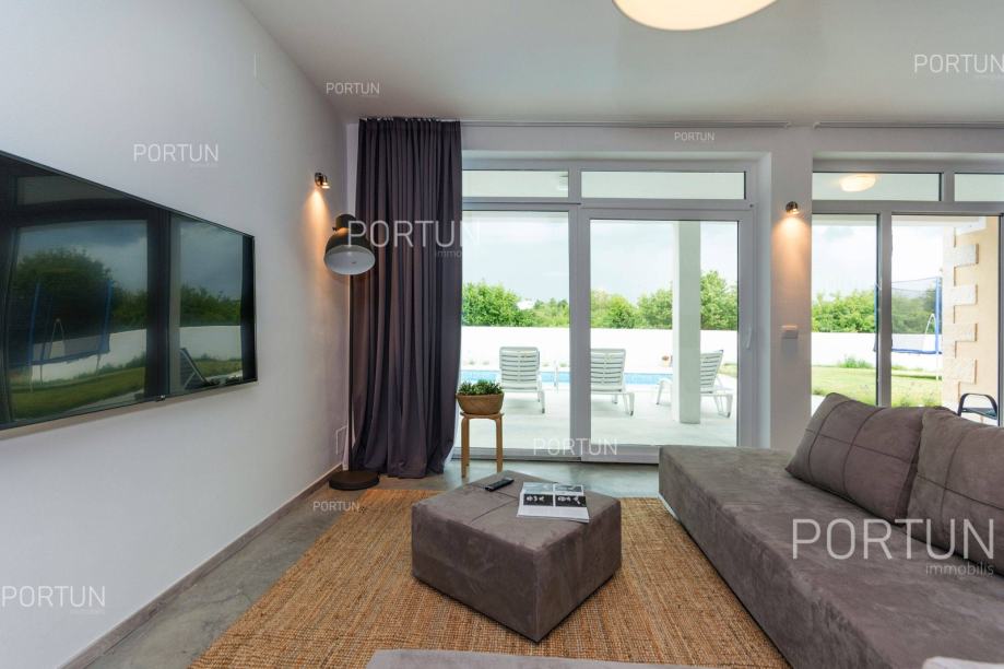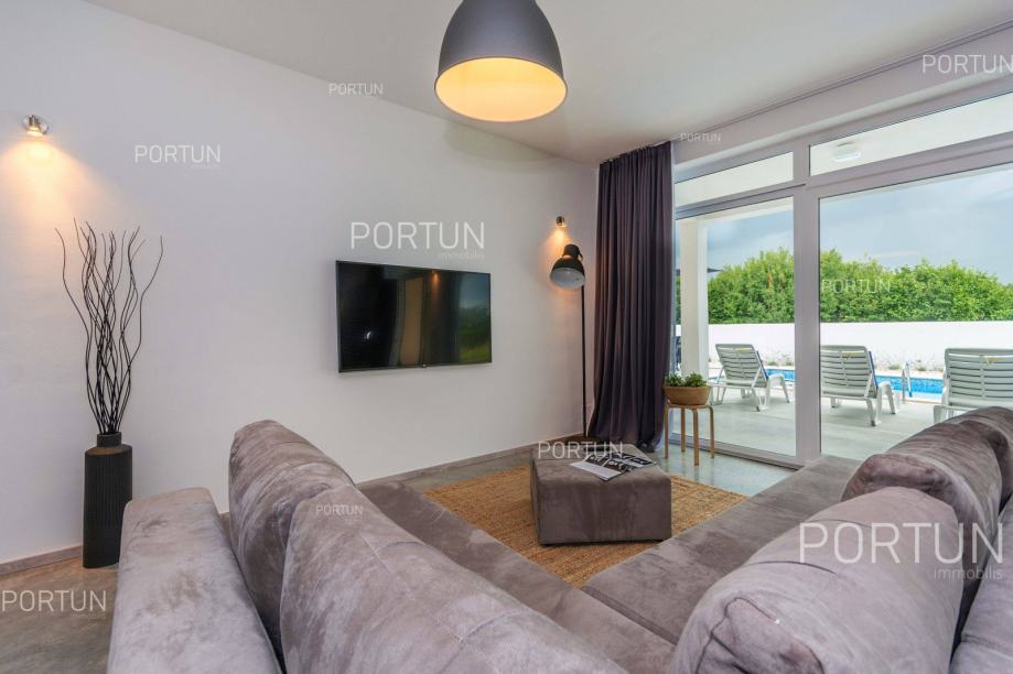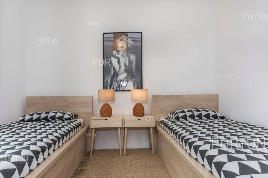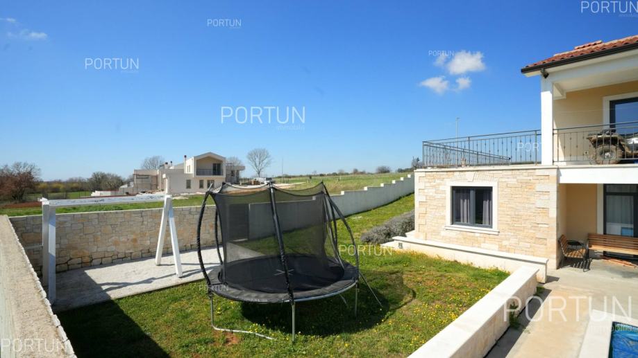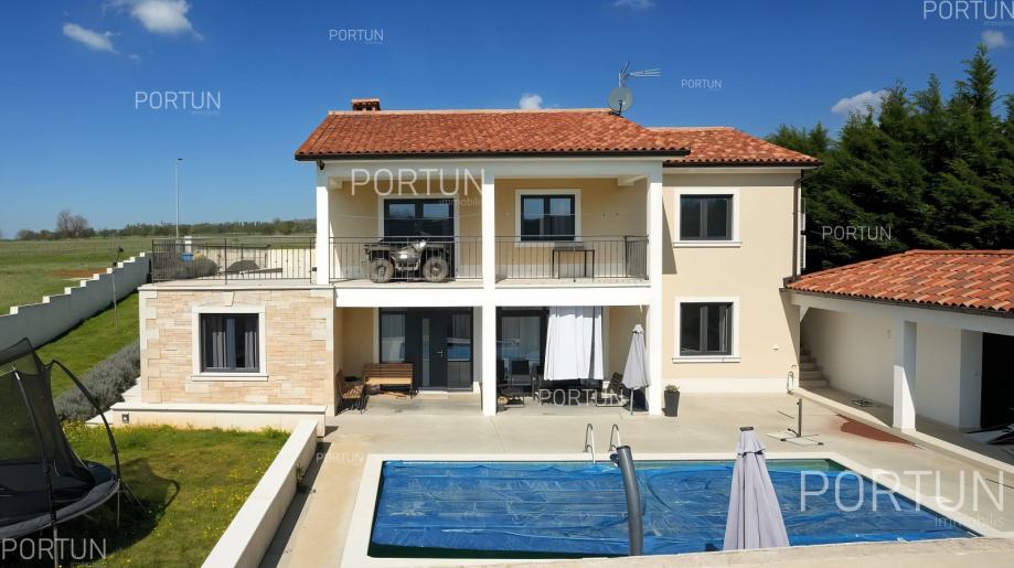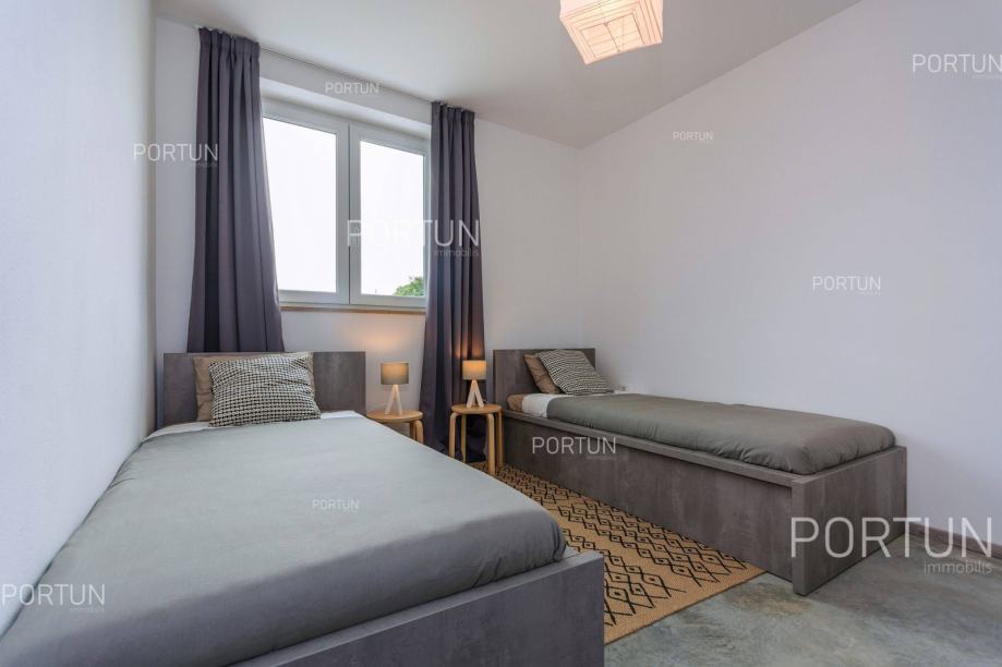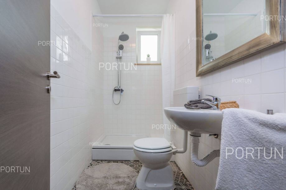 U unutrašnjosti Istre, u zelenom okruženju između Poreča i Pazina, prodaje se kuća za odmor u kojoj se mogu smjestiti dvije veće obitelji, a raspolaže s bazenom i uredno njegovanom okućnicom. Veći stan, onaj sa četiri spavaće sobe nalazi se u prizemlju, dok se stan s dvije spavaće sobe i velika terasa nalaze na prvom katu. Ugodan interijer kuće suvremeno je uređen i prilagođen današnjim standardima. Vrt je osmišljen kao vanjska zona za rekreaciju na travnjaku ili opuštanje uz zabavu na bazenu. Iz kuće se pruža pogled na tipični krajolik središnje Istre – autohtonu šumu ispresijecanu livadama i vinogradima. Kuća je nedavno izgrađena za potrebe iznajmljivanja, a prodaje se zajedno s namještajem i opremom. Kuća je pažljivo održavana pa novi vlasnik može odmah nastaviti s iznajmljivanjem, a budući da ima čak 12 kreveta, budući vlasnik može računati s nešto većim prihodom od najma u odnosu na jednoobiteljske kuće. KLJUČNE OSOBINE✔ 1 Vlasnički četverosobni stan│ 1 Dvosobni apartman✔ 6 Spavaćih soba | 3 Kupaonice | 1 WC | 12 Ležaja✔ Pomoćna građevina - 40,00 m2✔ Bazen - 32,00 m2✔ Seoski ambijent nedaleko od Tinjana✔ Plaža 17 km SAZNAJTE VIŠEViše informacija o oglasu broj 20820 saznajte na https://portun.comDirektan link na oglas: https://portun.com/hr/20820/Za sva dodatna pitanja na raspolaganju je agent posredovanja Alesandro Laginja +385919386003
