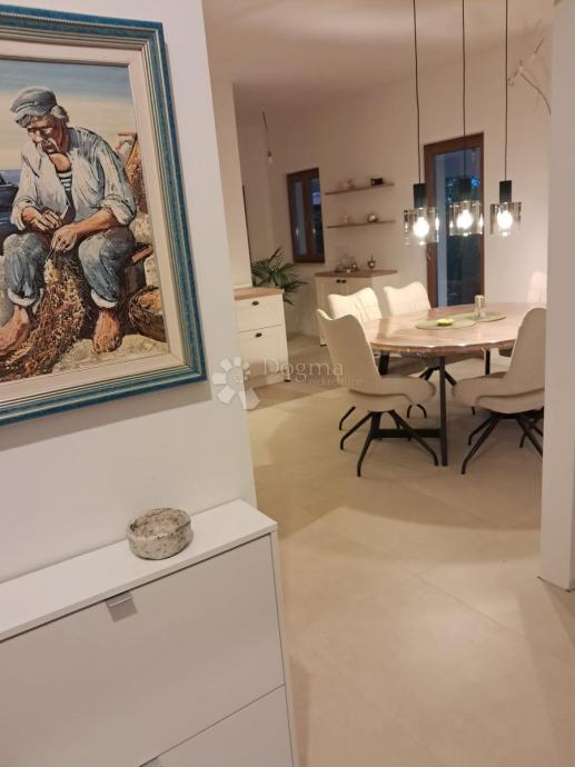 Lijepa kuća sa nekoliko kosih krovova na različitim razinama, sastoji se od hodnika, open space kuhinje i dnevnog boravka, tri kupatila,