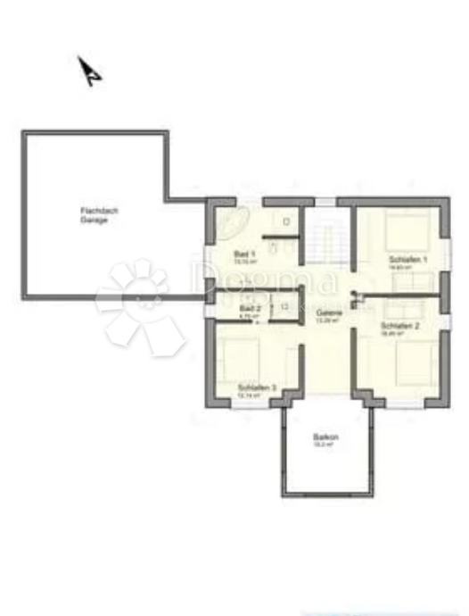 - Na gornjem katu: do gornjeg kata dolazi se ravnim, čvrstim stubištem, gdje se i po potrebi može postaviti stubišni lift. 3 prostrane spavaće sobe, od kojih je jedna master bedroom sa vlastitom kupaonicom. 2 su smještene na katu i obe su opremljene sa kadom. U medjuprostoru galerija i izlaz na veliki balkon.