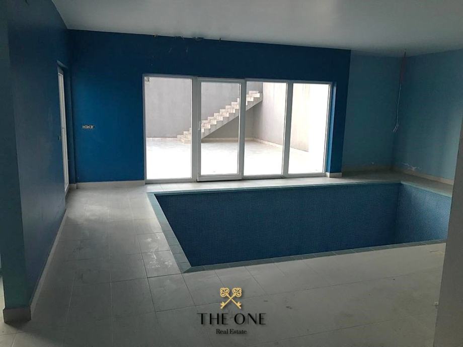 Prostrana kuća s unutarnjim bazenom, smještena je na mirnoj lokaciji u Zagrebu, na parceli površine 1272 m² i raspoređena na četiri etaže, koje sadrže tri odvojena stana te unutarnji bazen.