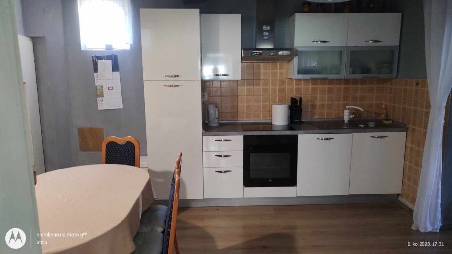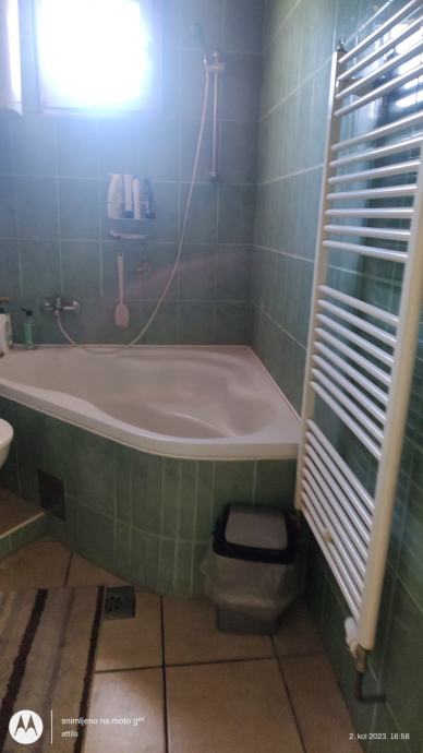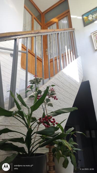 Prostrano dvorište, dvije garaže, nusprostorije, kotlovnica za centralno grijanje-dvije peći, drvo i drvo-pelet, zimsko ljetna terasa – 25 m2, 3 balkona, 1 prema ulici i 2 s dvorišne strane, prostrano travnato dvorište, veliki vrt s voćnjakom.