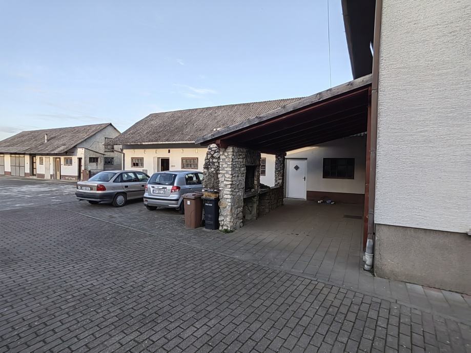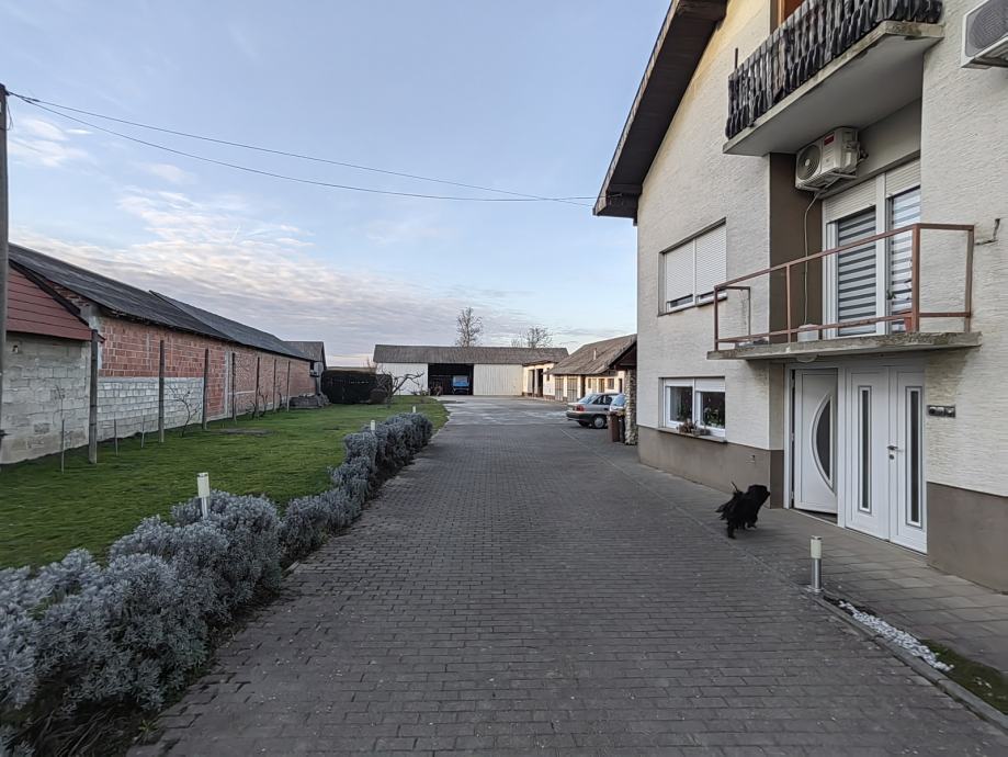 U dvorištu se nalaze garaže i gospodarske zgrade.