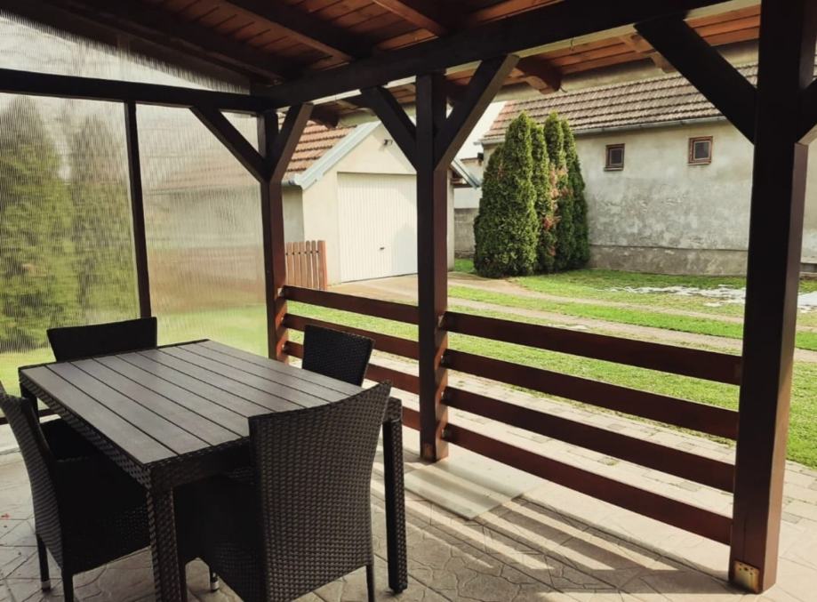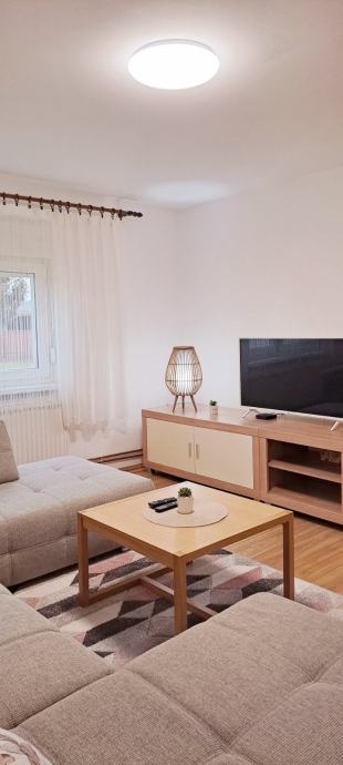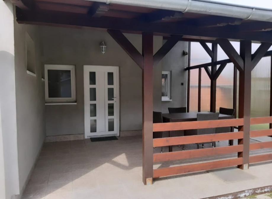 ulazni hodnik, kuhinja sa blagovaonom, veliki dnevni boravak, kupaonica, wc, dvije spavaće sobe te prostrana, natkrivena terasa. Kuća je kompletno namještena.