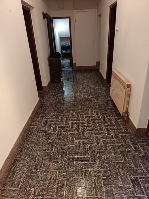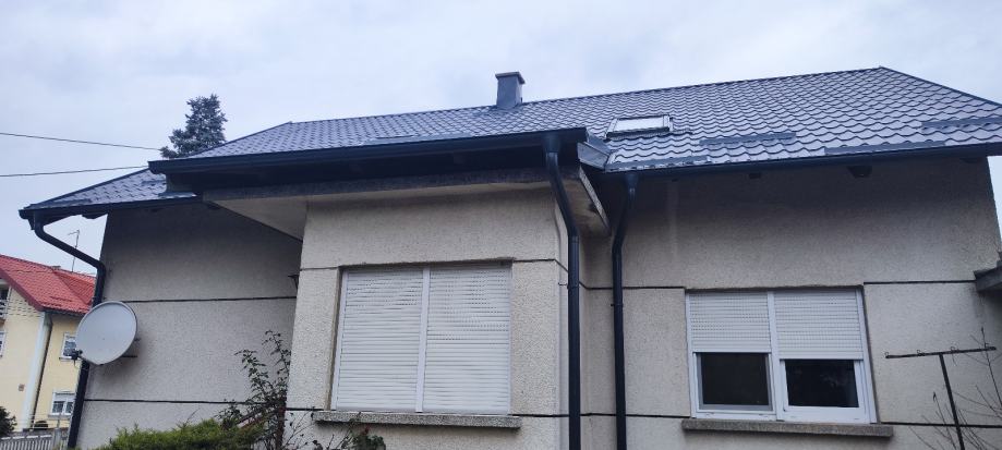Kuća je 11 x 10 m i ima prizemlje i 1 kat. Garaža je 60 m2 sa 2 ulaza i podrum je 11 x 10 m.
