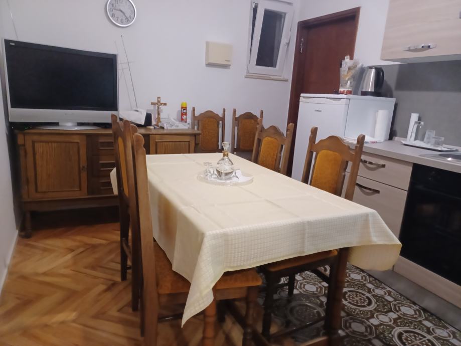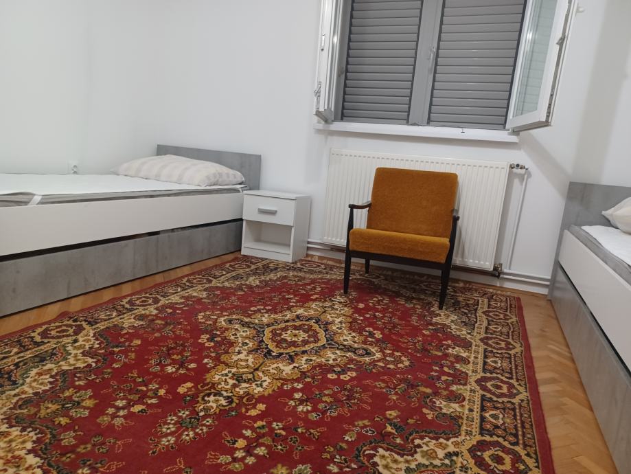 Iznajmljuje se samostojeća kuća u Bibinjama za 6-8 radnika na duži period (tijekom cijele godine). Nalazi se u blizini plaže i željezničke stanice. Kuća ima tri spavaće sobe, kuhinju s blagovaonicom, dva wc-a, hodnik, veliku natkrivenu terasu (oko 25 m2), vlastita 4 parkirna mjesta. Grijanje na kotlovnicu na lož ulje, klimatizacijski uređaj.. Ima vlastitu okućnicu i mogućnost roštilja. Iznos najma izražen po osobi. Režije u cijeni uključuju: porez, komunalnu naknadu, čistoću - u cijelosti. Voda u max. iznosu do 50,00 eura mjesečno i el. energija u max.iznosu do 100,00 eura mjesečno.