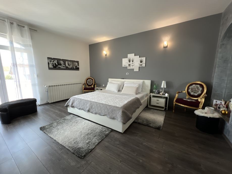Sva oprema je izuzetne kvalitete (PVC stolarija po mjeri proizvođača Iveta, Vimar prekidači i utičnice, alarmni sustav s videonadzorom renomiranog proizvođača i drugo).