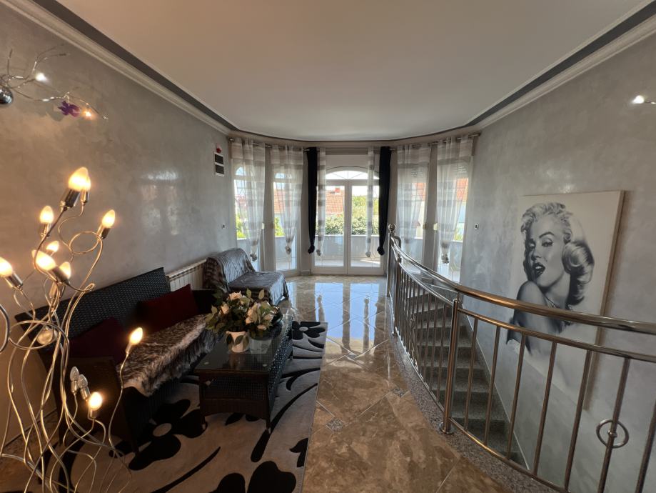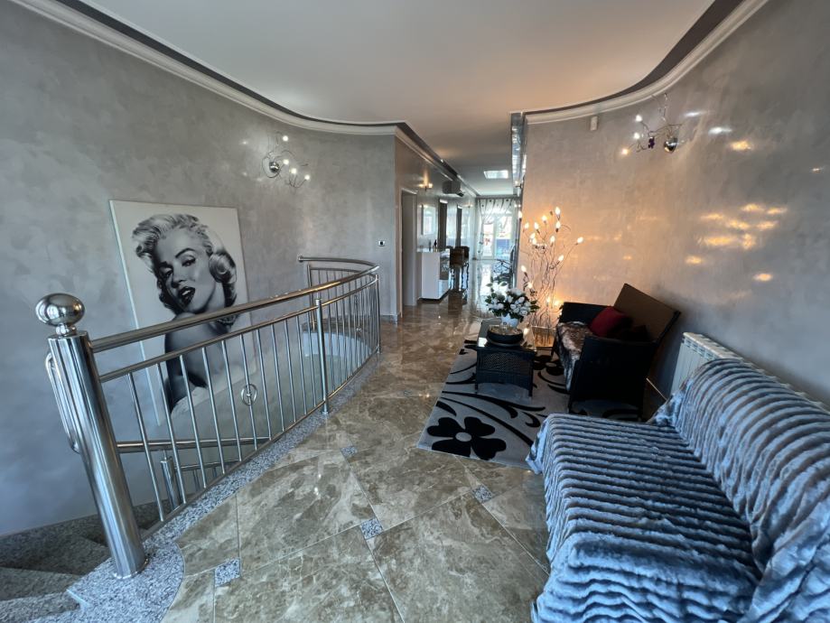 Do predsoblja na katu vode prekasne mramorne stepenice, a dužinom cijelog objekta proteže se impresivan hodnik koji na obje strane ima izlaz na terasu/balkon.