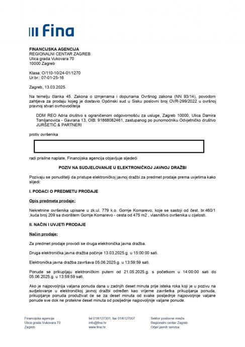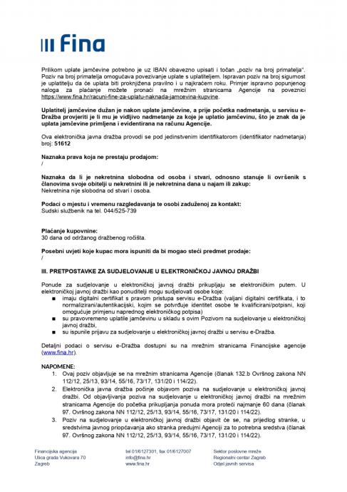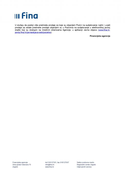 Druga elektronička javna dražba počinje 13.03.2025.g. u 15:00:00 sati.