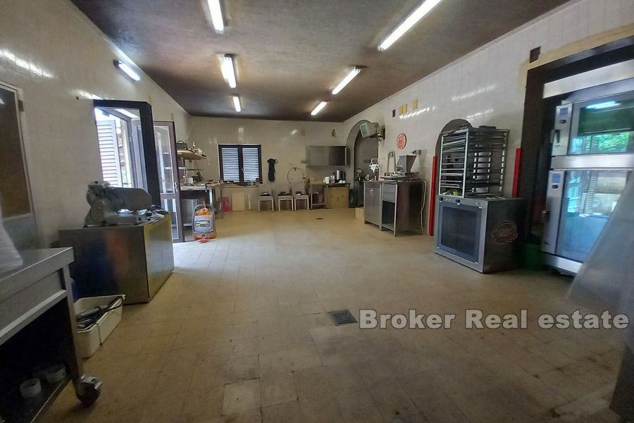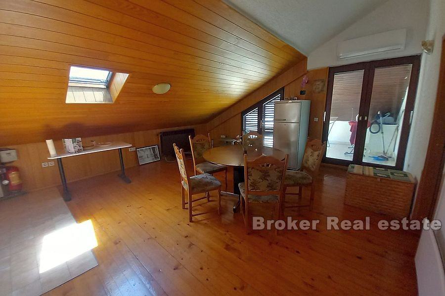 U prizemlju kuće se nalazi stan s kupatilom i posebnim ulazom od cc 100 m2 koji se koristio kao pekarnica te ga je potrebno renovirati iz stana se izlazi u prekrasan vrt s terasom. Na prvoj etaži se nalazi prostrani stan s posebnim ulazom s stražnje strane kuće od 100 m2 u kojem se nalaze 2 sobe i balkon, kuhinja s blagovaonicom, dnevnim boravkom iz kojeg se izlazi na balkon te dvije ostave. Na drugoj etaži se nalazi dvosoban stan u visokom potkrovlju koji se sastoji od kupatila, dnevnog boravka, kuhinje s blagovaonicom 2 sobe jednom većom terasom i balkonom.