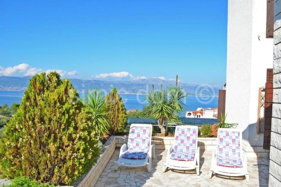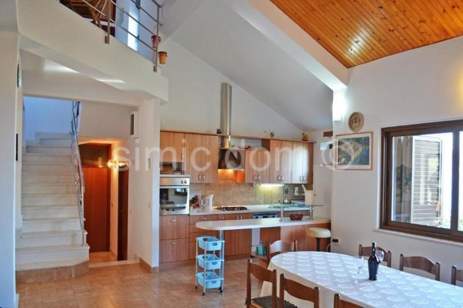 Posredujemo u prodaji vrlo prostrane kuće na lokaciji koja je samo 200m od mora, na jednom od najmirnijih predjela otoka Čiova. Kuća ima površinu od 400m2, a nalazi se na parceli koja ima malo više od 800m2. Sastoji se od prizemlja, kata te galerije. U prizemlju su dvije spavaće sobe, kupaonica i kuhinja. Na prvom su katu dnevni boravak, dvije spavaće sobe, kuhinja te kupaonica, dok unutarnje stepenice vode na galeriju koja nudi još dvije spavaće sobe i kupaonicu. Sve tri razine kuće nude prelijep pogled na more. U prizemlju se nalazi velika, popločana terasa s vanjskim parkirnim prostorom. Prvi kat ima tri prekrasne, prostrane terase koje nude pogled na more i okolno područje. Uređena i održavana okućnica nudi i manji objekt od bruto 28m2 koji ima višestruke namjene, a može biti izvrstan studio apartman. Kuća je u odličnom, održavanom stanju, a zbog svoje lokacije nudi izniman mir i privatnost. Vlasništvo uredno.