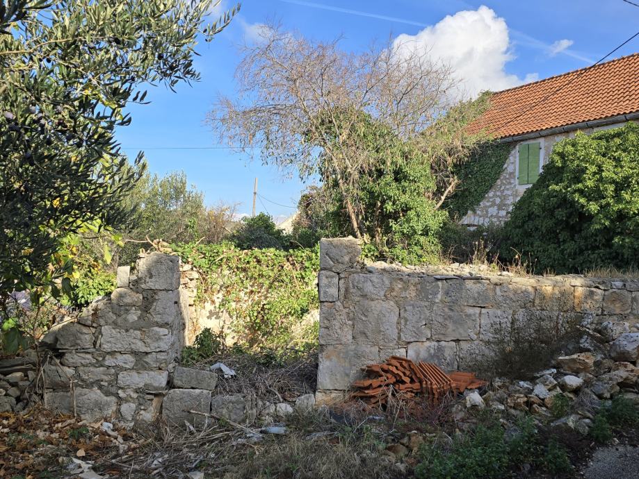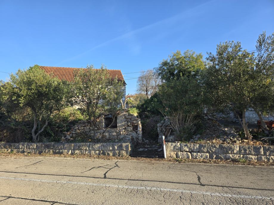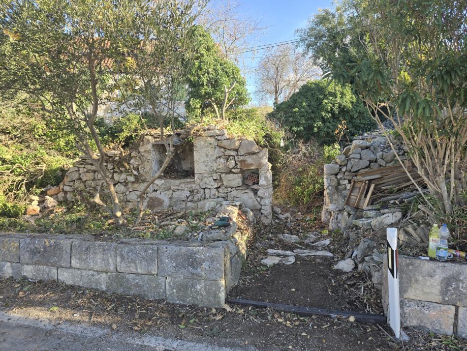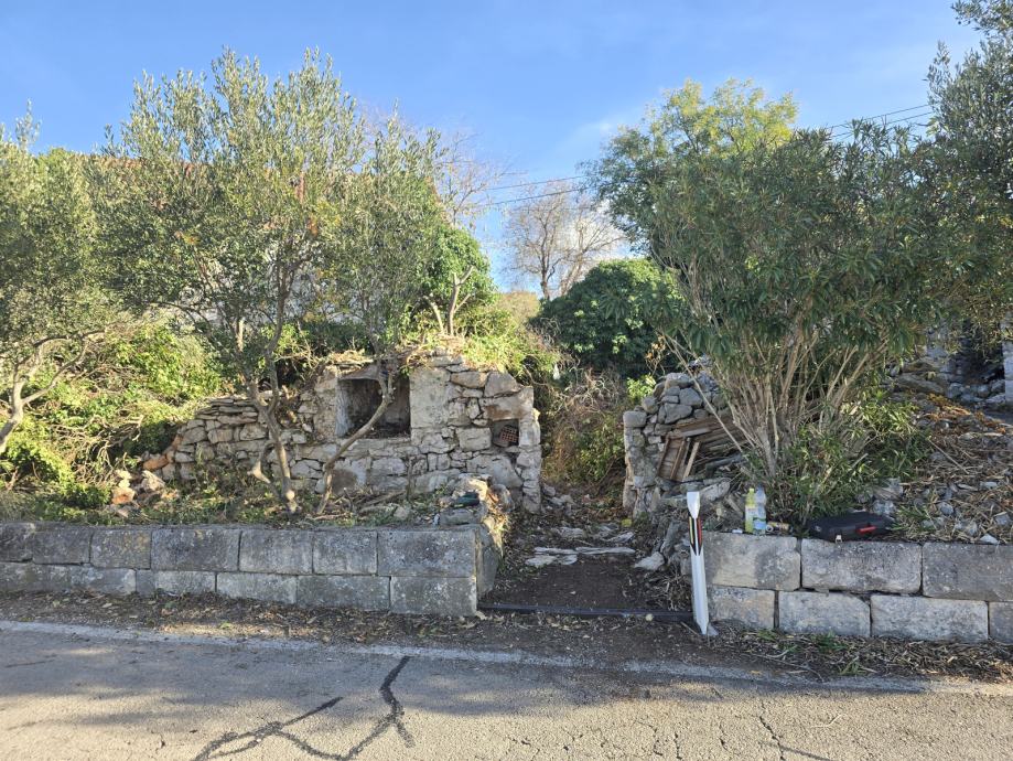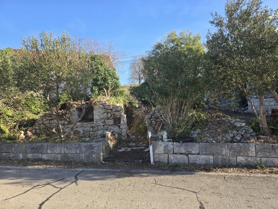 Prodajem, zemljište u Bobovišča na Bracu. Trokutastog oblika cca 300m2 sa urušenom kućom 60m2 vlasništvo