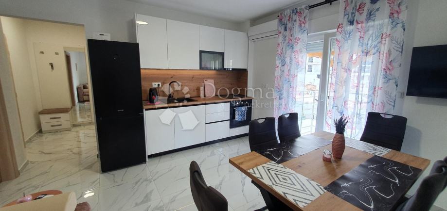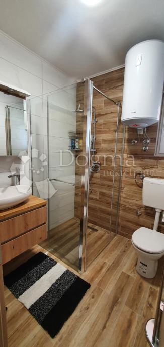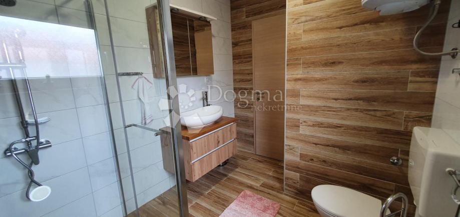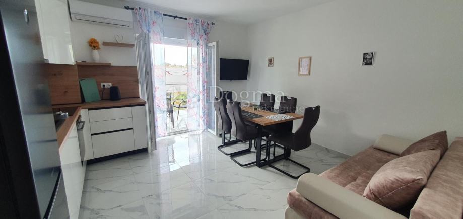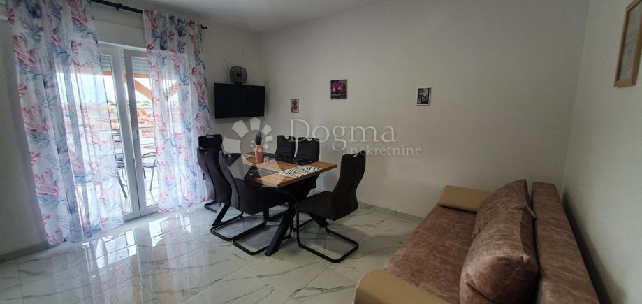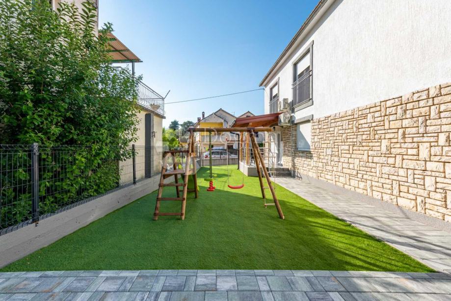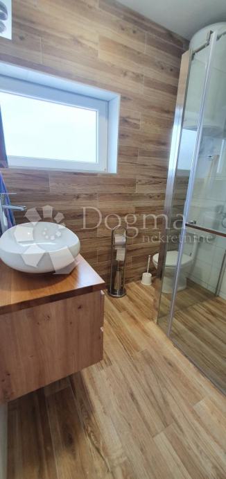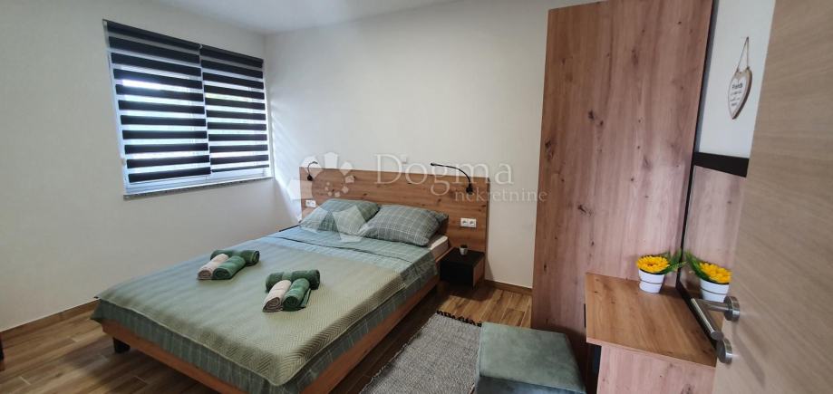 Kuća se sastoji od prizemlja i prvog kata. U prizemlju se nalaze studio apartman (17 m2) i jednosobni apartman (40 m2), a na prvom katu se nalazi jednosobni apartman (41 m2) i studio apartman (21 m2). Unutranje stubište vodi iz prizemlja na prvi kat, sve četiri jedinice imaju odvojen ulaz i vlastitu terasu, svaka prostorija je klimatizirana. Apartmani na prvom katu imaju pogled na more. Kuća je kompletno preuređena u ljeto 2022.. Korišteni su vrhunski materijali. Veličina zemljišta na kojoj se nalazi kuća je 495 m2, u vrtu se nalazi prostrani bazen, uređena okućnica i malo dječje igralište.