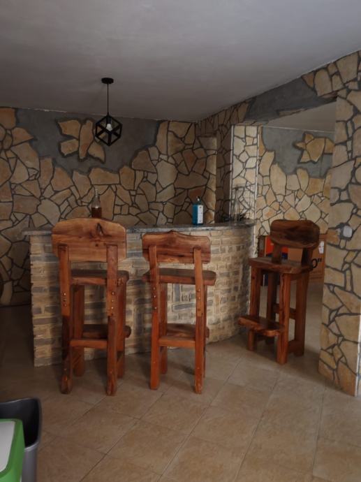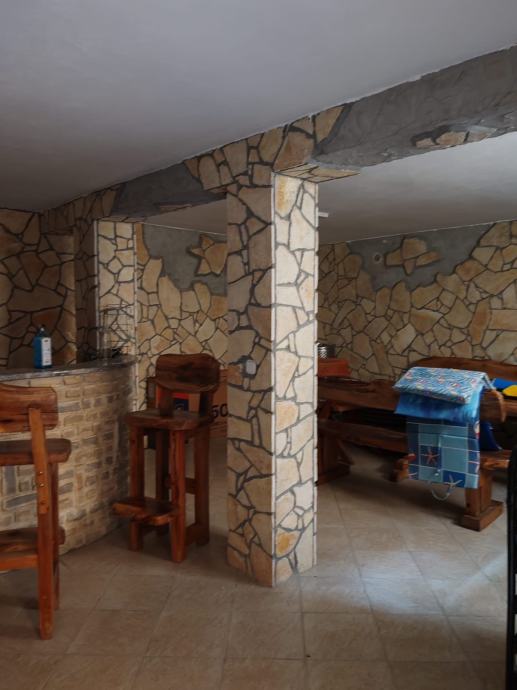 Razizemlje (93m2): 1 apartman, konoba, natkrivena terasa sa roštiljem i , WC i vanjski tuš, idealno za vanjsko blagovanje..
