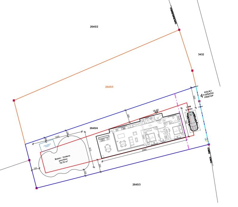 Okućnica će biti ograđena zidom i zelenom živicom, kako bi maksimalno osigurala sigurnost i privatnost njezinim budućim korisnicima za vrijeme uživanja na vanjskom bazenu.